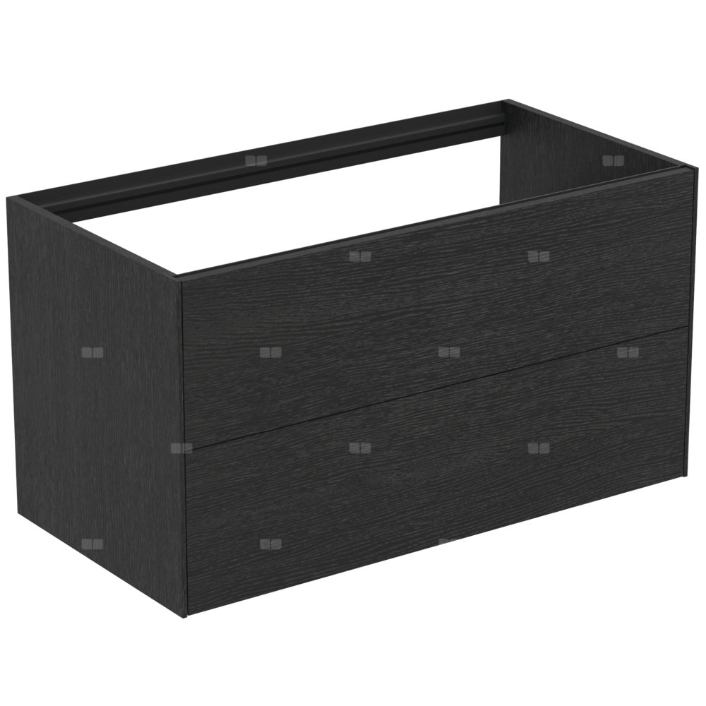 Wysokość 55 cm. 2 szuflady. Bez blatu. Otwieranie szuflady typu "Push to open" z samodomykaniem “soft close". Wewnętrzne wykończenie w kolorze antracyt, dopasowane do koloru prowadnic szuflady. Do skompletowania z ceramicznym blatem (bez otworu/z otworem na zamówienie) 100 cm T3971. Ceramiczny blat (bez otworu/z otworem na zamówienie), zamawiany oddzielnie zależnie od rodzaju umywalki. Blat ceramiczny jest zamawiany oddzielnie pod wymiar. Rekomendowany: syfon oszczędzający przestrzeń EE23033967 (zamawiany oddzielnie).