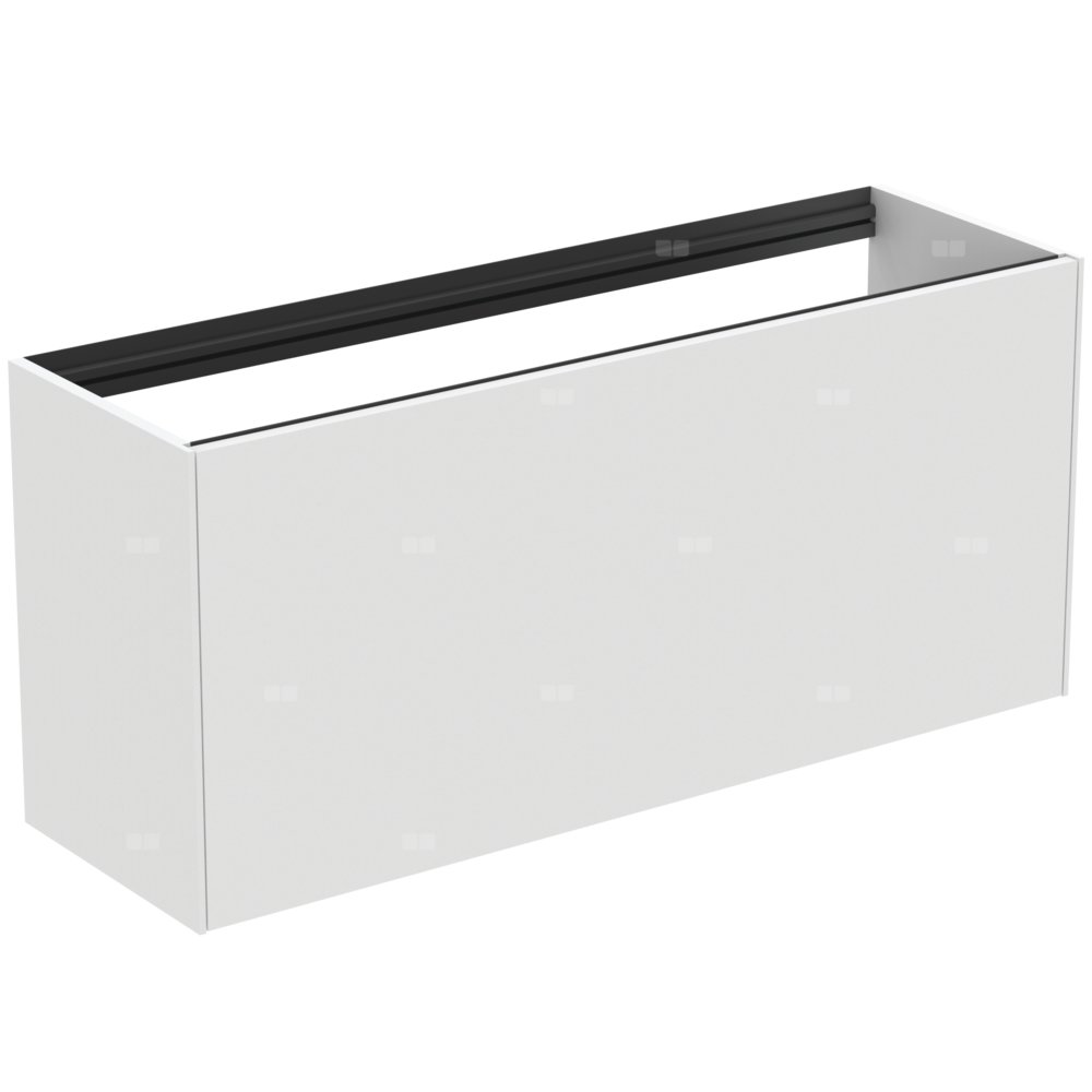 Szafka pod umywalkę z 1 zewnętrzną i 1 wewnętrzną szufladą do kompletowania z z blatem ceramicznym 120 cm T4347. Blat ceramiczny (bez otworu/z otworem na zamówienie) zamawiany oddzielnie pod wymiar wybranej umywalki. Szuflady z funkcjami push to open i samodomykania "soft close". Wykończenie wewnętrzne szafek w kolorze antracytowym, pasujące do koloru szuflad.
