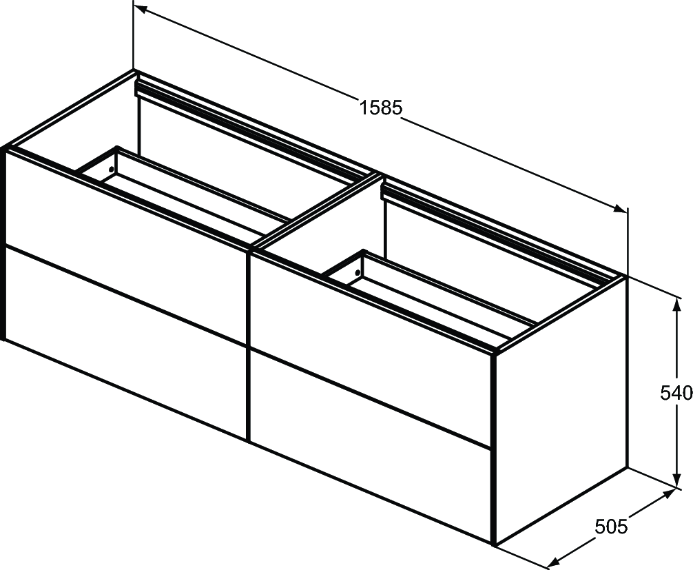 Z 4 szufladami z funkcjami push to open i samodomykania "soft close". Wykończenie wewnętrzne szafek w kolorze antracytowym, pasujące do koloru szuflad. Do kompletowania z blatem ceramicznym 160 cm T4202. Blat ceramiczny (bez otworu/z otworem na zamówienie) zamawiany oddzielnie pod wymiar wybranej umywalki. Rekomendowane wyposażenie: syfon oszczędzający przestrzeń EE23033967 - dostępny w osobnym zamówieniu.