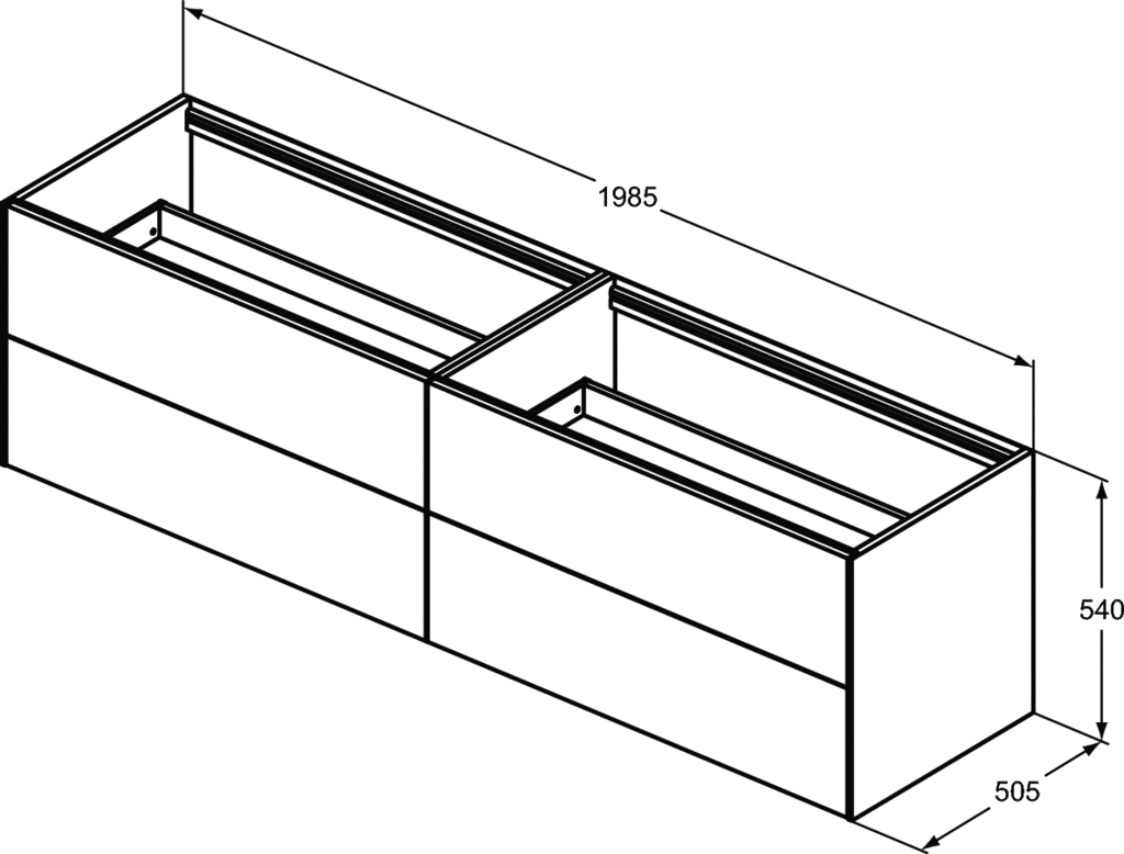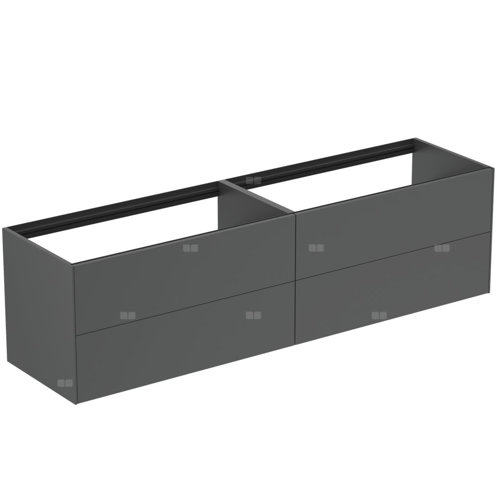 Z 4 szufladami z funkcjami push to open i samodomykania "soft close". Wykończenie wewnętrzne szafek w kolorze antracytowym, pasujące do koloru szuflad. Do kompletowania z blatem ceramicznym 200 cm T4204. Blat ceramiczny (bez otworu/z otworem na zamówienie) zamawiany oddzielnie pod wymiar wybranej umywalki. Rekomendowane wyposażenie: syfon oszczędzający przestrzeń EE23033967 - dostępny w osobnym zamówieniu.