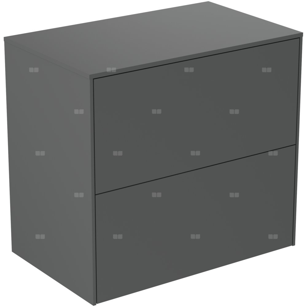 Z 2 zewnętrznymi szufladami z funkcjami push to open i samodomykania "soft close". Wykończenie wewnętrzne szafek w kolorze antracytowym. Do samodzielnego montażu lub kompletowania z następującymi umywalkami 40-60 cm: Conca wisząca (szlifowana od spodu), umywalki Conca z powierzchniami bocznymi, umywalkami Extra wiszącymi, umywalkami nablatowymi Extra oraz umywalkami nablatowymi Ipalyss. Rekomendowane wyposażenie: syfon oszczędzający przestrzeń EE23033967 - do zamówienia osobno. Do wycięcia przy użyciu szablonu dołączonego do umywalek (bez możliwości cięcia na blacie).