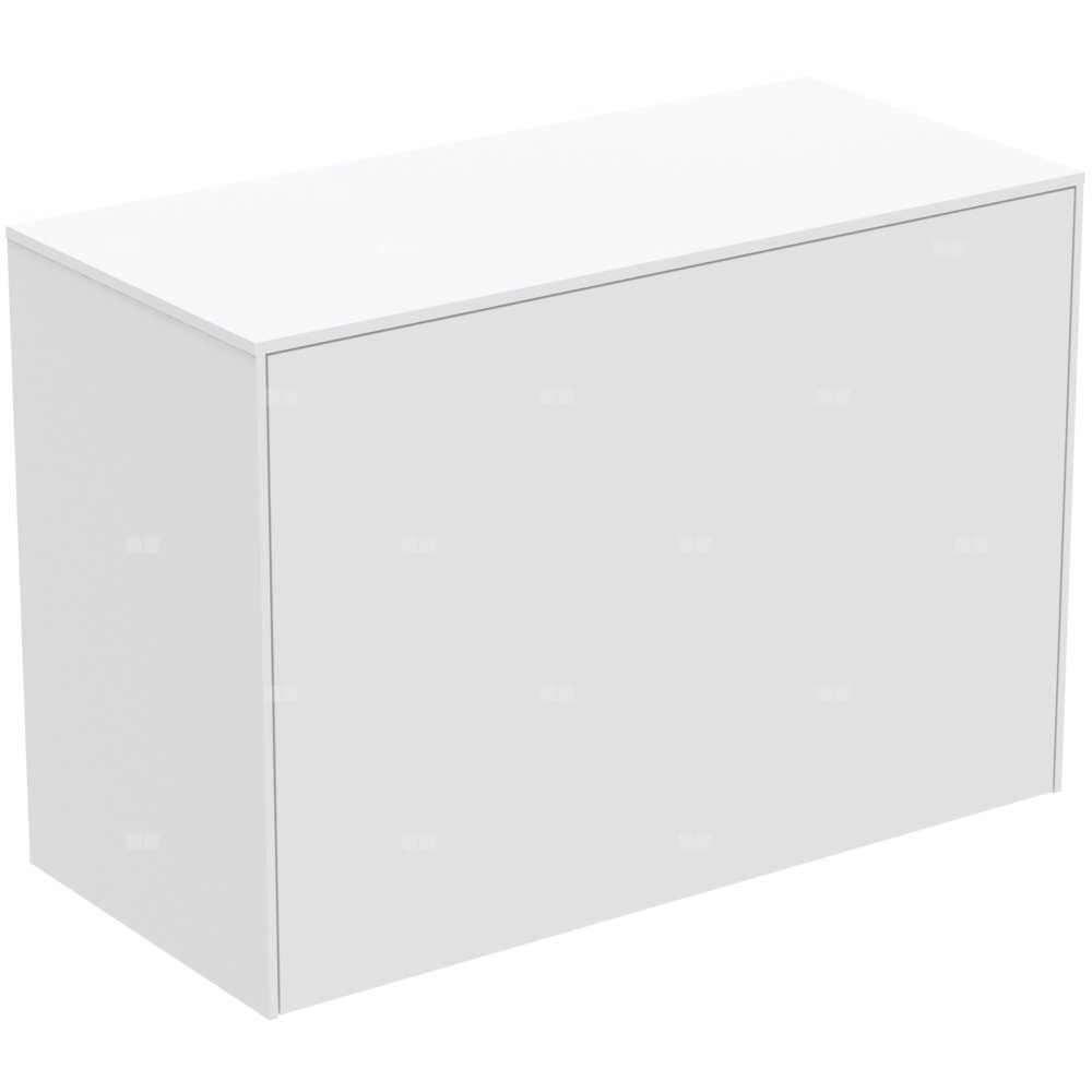 Szafka pod umywalkę bez wycięć na blacie, z 1 szufladą zewnętrzną i 1 szufladą wewnętrzną z funkcjami push to open i samodomykania "soft close". Wykończenie wewnętrzne szafek w kolorze antracytowym. Do samodzielnego montażu lub do kompletowania z wiszącymi (szlifowanymi od spodu) lub nablatowymi umywalkami (z wykorzysteniem szablonów do wycięcia otworu).