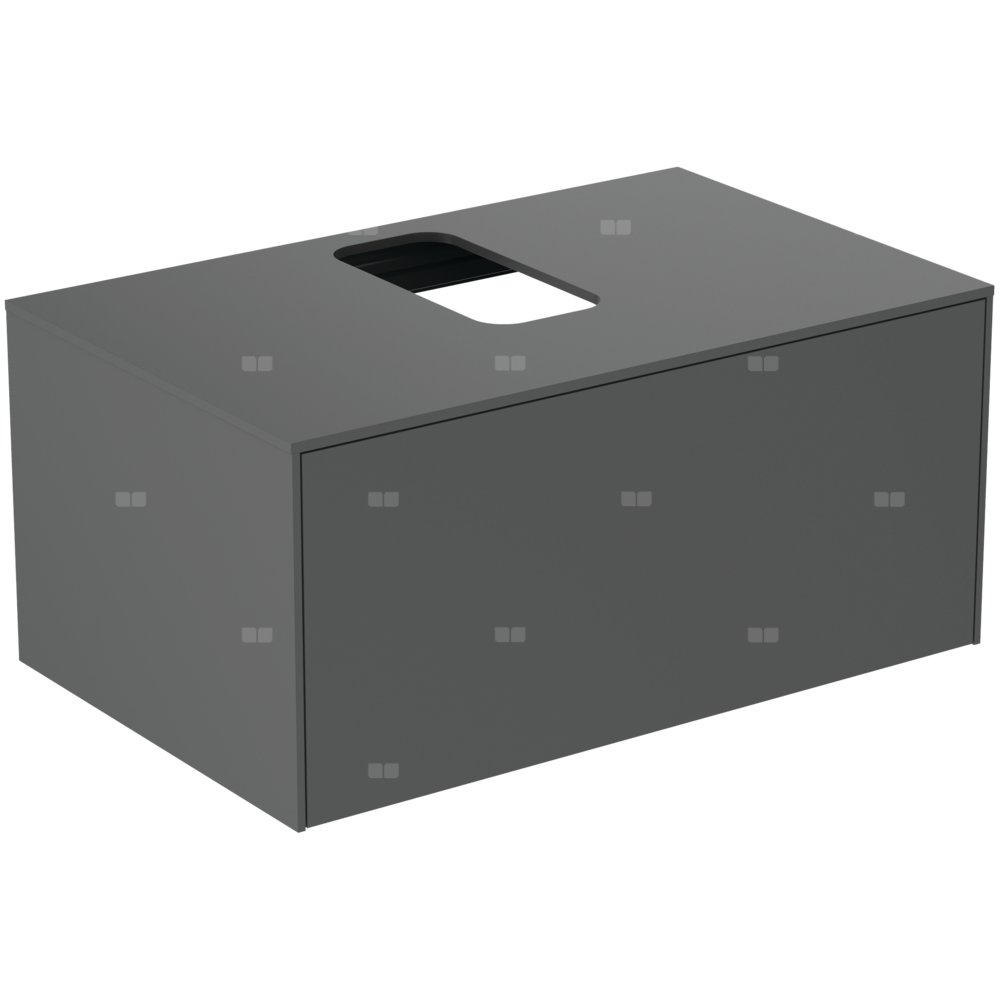 Szafka pod umywalkę z centralnie wyciętym otworem w blacie. Z 1 szufladą z funkcjami push to open i samodomykania "soft close". Wykończenie wewnętrzne szafek w kolorze antracytowym. Do kompletowania z: umywalkami wiszącymi Conca (szlifowanymi) 40-80 cm, umywalkami nablatowymi Conca 45/60 cm, umywalkami wiszącymi Extra (szlifowanymi) 45-80 cm, umywalkami Extra 50/60 cm, umywalkami nablatowymi Ipalyss 40-80 cm. Rekomendowane wyposażenie: syfon oszczędzający przestrzeń EE23033967 - dostępny w osobnym zamówieniu.