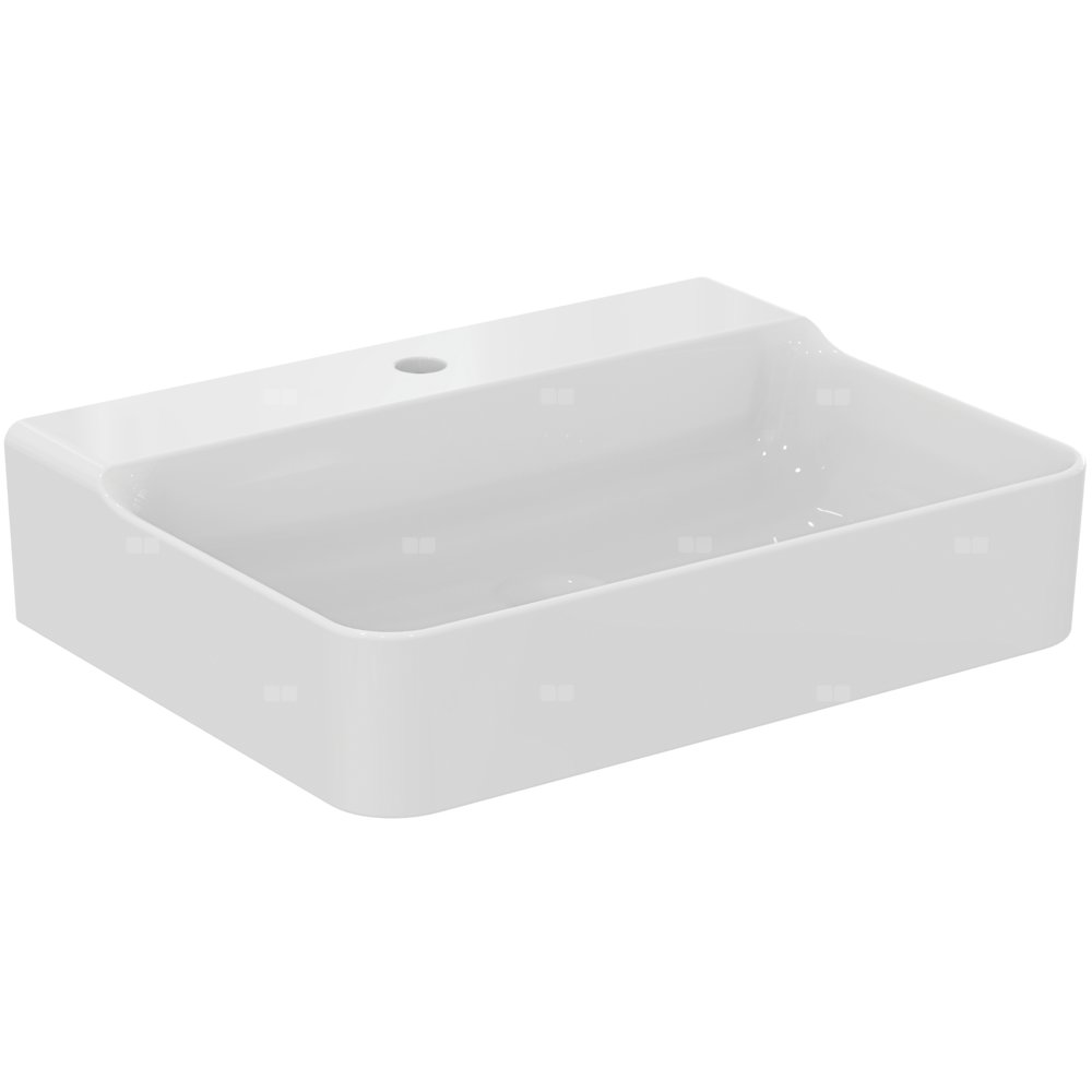 Umywalka Conca mocowana do ściany z 1 wybitym otworem na baterię, bez przelewu.