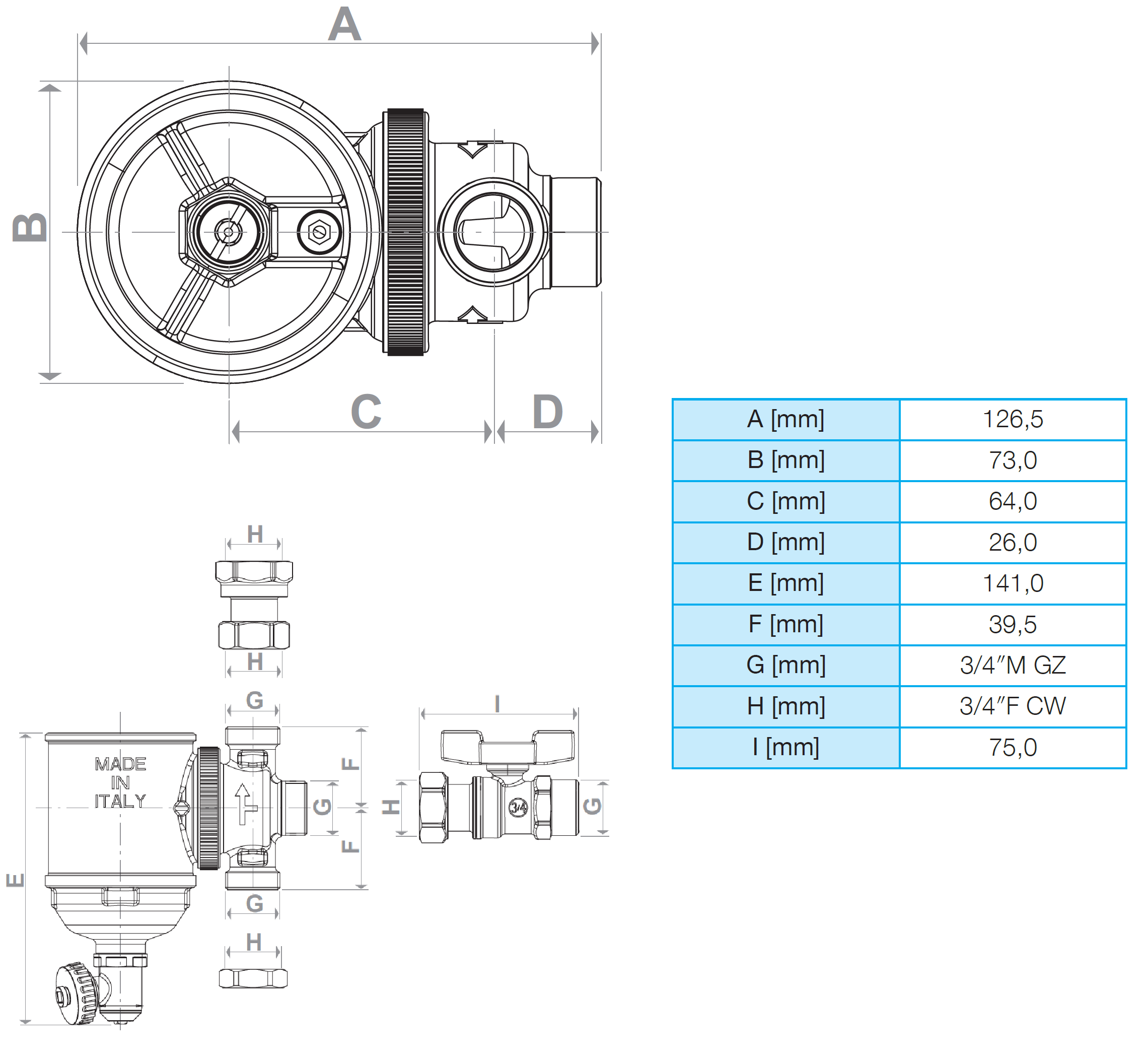 ZAWARTOŚĆ:Magnetyczny, kompaktowy separator zanieczyszczeń wyposażony w komorę cyklonową z osadnikiem oraz filtrem 300 µm do instalacji c.o. GZ ¾ zbudowany jest z: