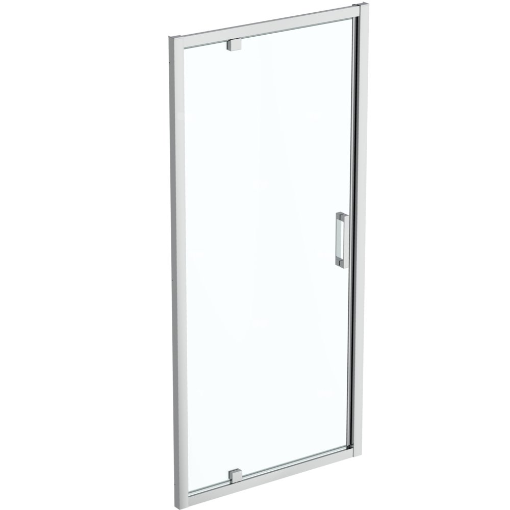 CONNECT 2 Drzwi prysznicowe. Wysokość 195 cm. Bezpieczne, hartowane, szkło grubości 6 mm. Szkło przeźroczyste pokryte w standardzie powłoką IDEAL CLEAN ułatwiajacą utrzymanie czystości. Profile aluminiowe dostępne w kolorach srebrnym połysk i biały mat. Wygodne metalowe uchwyty drzwi długości 225 mm w kolorze chrom. Profile ułatwiające montaż i dostosowanie wymiarów kabiny w zakresie do 25 mm. Drzwi otwierane na zewnątrz do montażu we wnęce lub do skompletowania z wybraną ścianką boczną jako kabina narożna. Możliwość montażu bezpośrednio na podłodze lub skompletowania z odpowiednimi brodzikami Ideal Standard. Zalecane dodatkowe elementy: CONNECT 2 Ścianka boczna w wybranym rozmiarze. Uwaga: Drzwi kabiny są odwracalne.