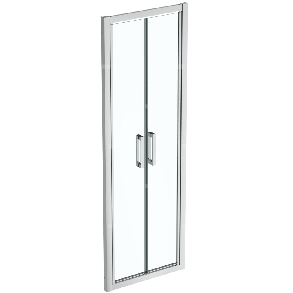 CONNECT 2 Drzwi prysznicowe typu Saloon. Wysokość 195 cm. Bezpieczne, hartowane, szkło grubości 6 mm. Szkło przeźroczyste pokryte w standardzie powłoką IDEAL CLEAN ułatwiajacą utrzymanie czystości. Profile aluminiowe dostępne w kolorze srebrnym połysk. Wygodne metalowe uchwyty drzwi długości 225 mm w kolorze chrom. Profile ułatwiające montaż i dostosowanie wymiarów kabiny w zakresie do 25 mm. Drzwi wahadłowe otwierane na zewnątrz i do wewnątrz do montażu we wnęce lub z wybraną ścianką boczną jako kabina narożna. Możliwość montażu bezpośrednio na podłodze lub skompletowania z odpowiednimi brodzikami Ideal Standard. Zalecane dodatkowe elementy: CONNECT 2 Ścianka boczna w wybranym rozmiarze.