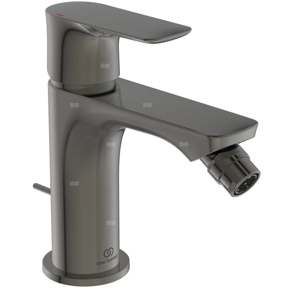 Bateria bidetowa jednootworowa z korkiem automatycznym. Smukły, mosiężny, odlewany korpus. Metalowy uchwyt z nadrukowanymi czerwonymi i niebieskimi oznaczeniami. Elastyczne wężyki przyłączeniowe PEX G3/8". Perlatorator typu Ball-joint M18x1 - 5l/min. Głowica ceramiczna 25 mm bez ogranicznika temperatury. Metalowy korek automatyczny, brak funkcji Click.