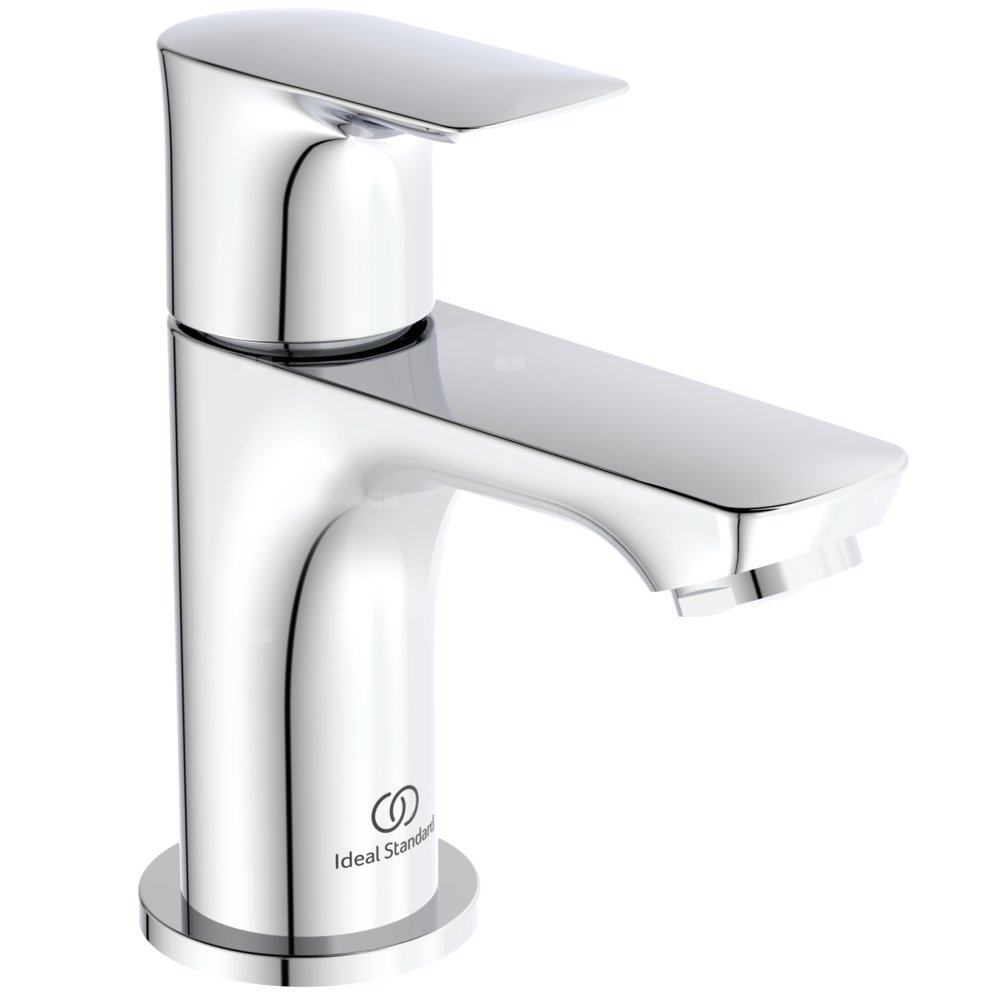 Bateria umywalkowa z nową nakładką na uchwyt z logo Ideal Standard (bez oznaczeń kolorystycznych). Metalowy uchwyt z nadrukowanymi czerwonymi i niebieskimi oznaczeniami. Mocowanie uchwytu przedniego, gumowy przycisk (szary). Elastyczne wężyki przyłączeniowe PEX G3/8". Perlator M24x1 - 5l/min. Zgodna z EN820.