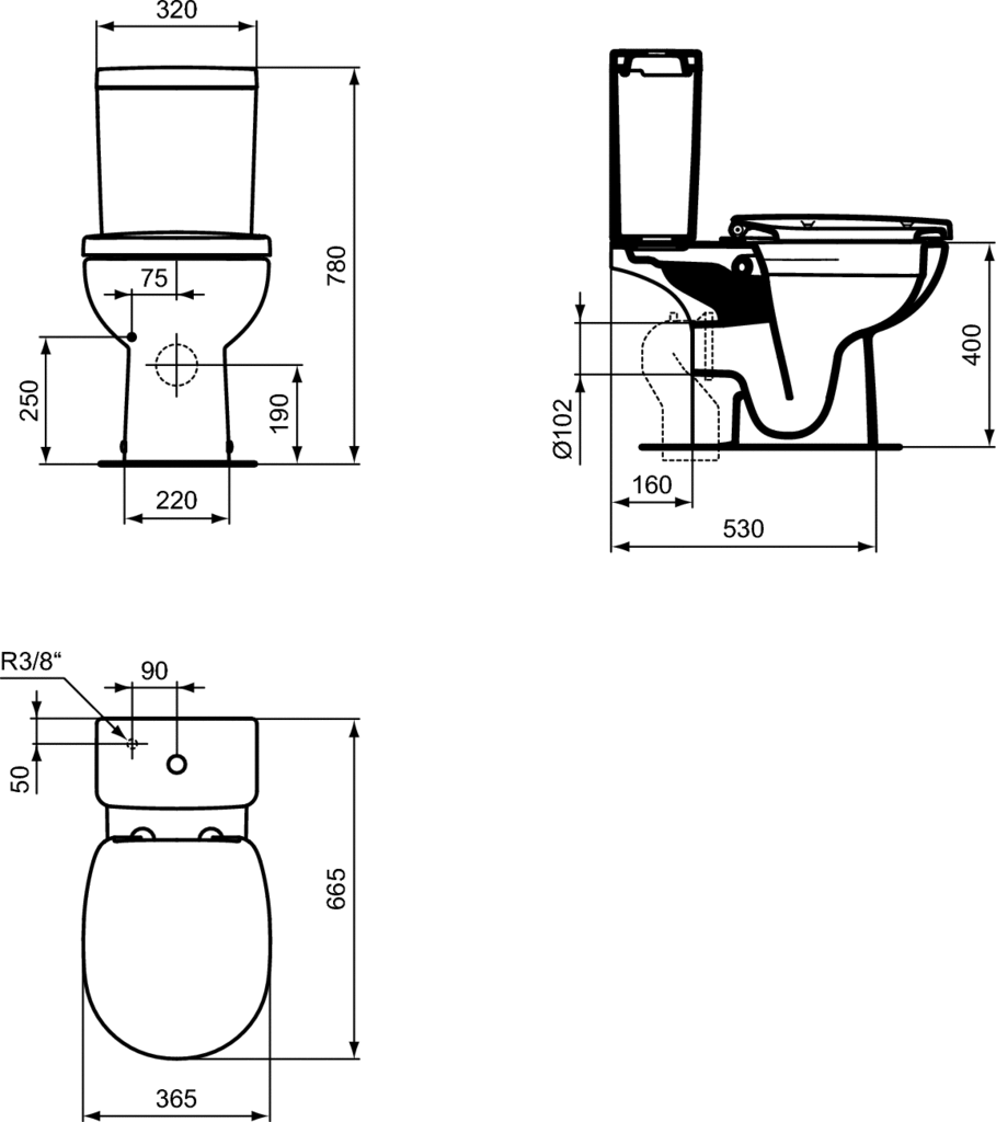 Zbiornik CUBE do kompaktu WC - doprowadzenie wody z dołu, zbiornik 3/6 l. 10 kg.
