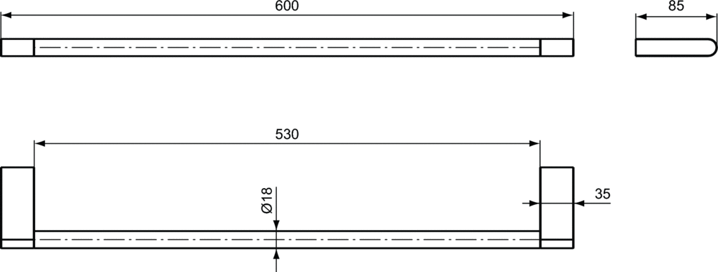 Connect Poręcz na ręcznik. 600 x 85 x 18 mm, 1,46 kg.