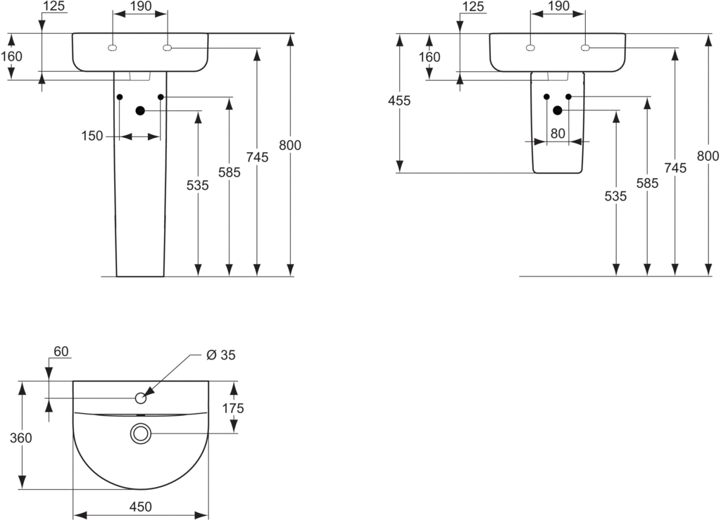 CONNECT UMYWALKA ARC 45CM Z OTWOREM 450X