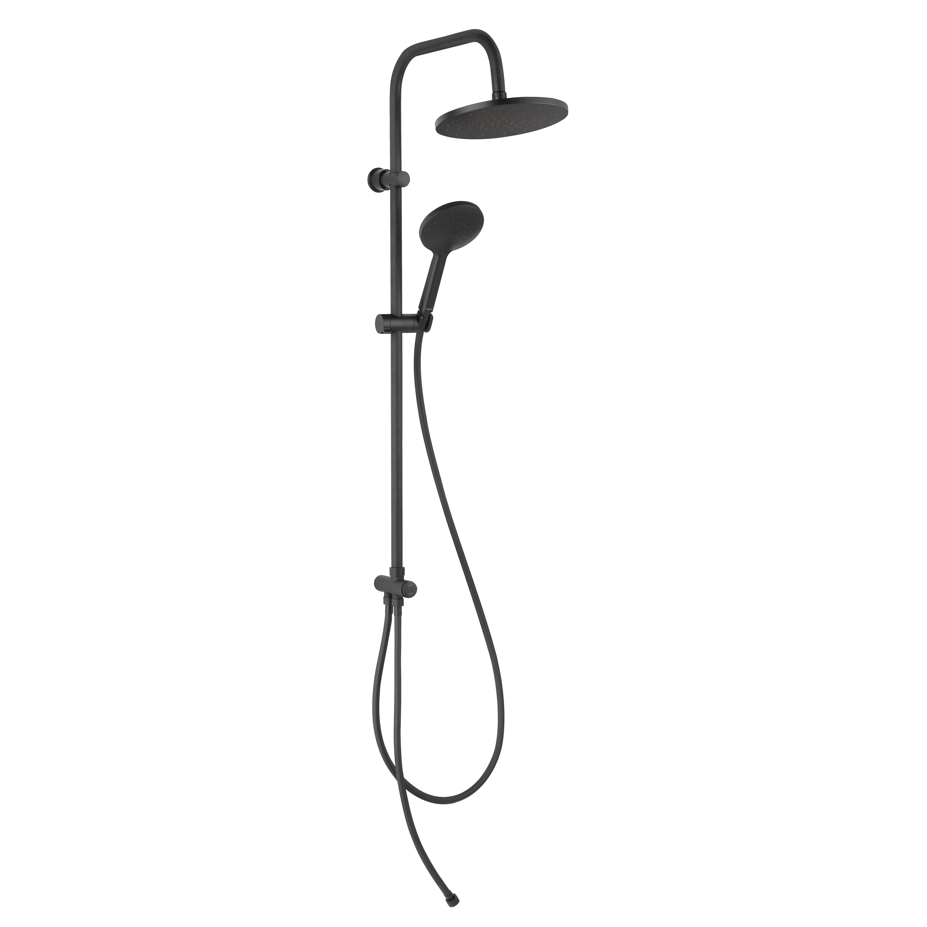 Kalsyczny, okrągły zestaw deszczownica z rączką natryskową, wyposażony w innowacyjny system automatycznego usuwania kamienia wapiennego.