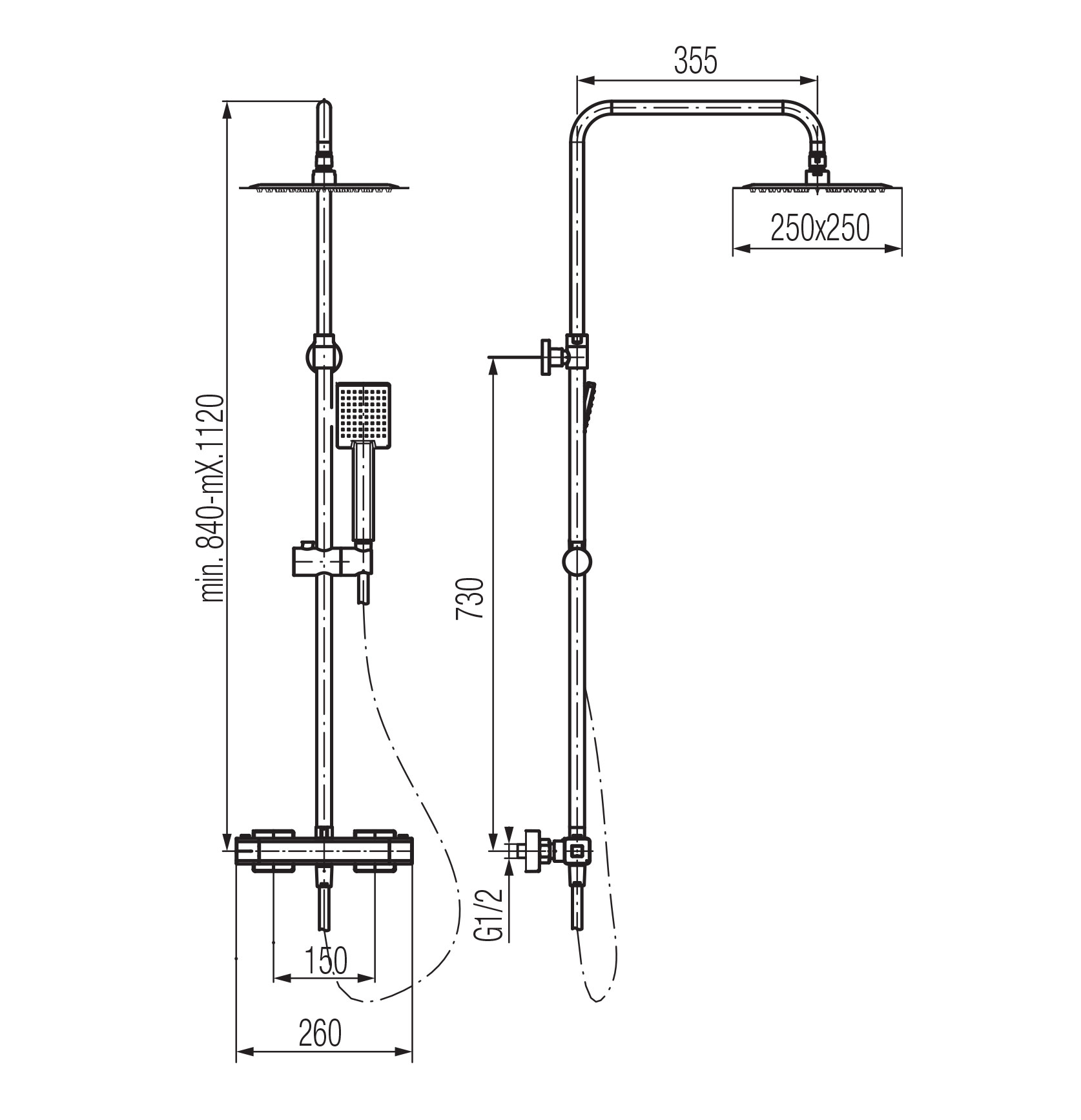 CUBUS BLACK Kolumna natryskowa z baterią termostatyczną