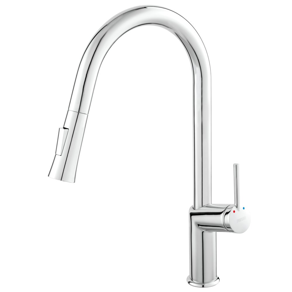 Piękna bateria kuchenna z wysoką, wyciąganą 2-funkcyjną wylewką zapewnia komfortowe zmywanie. Dzięki niej bez trudu można napełnić naczynia wodą oraz utrzymać w czystości zlewozmywak. Minimalistyczna forma baterii z delikatnie zaznaczonym uchwytem i łagodnie wyprofilowaną wylewką podkreślona została przez lśniącą, chromowaną powłokę. To idealna propozycja do kuchni w stylu nowoczesnym.