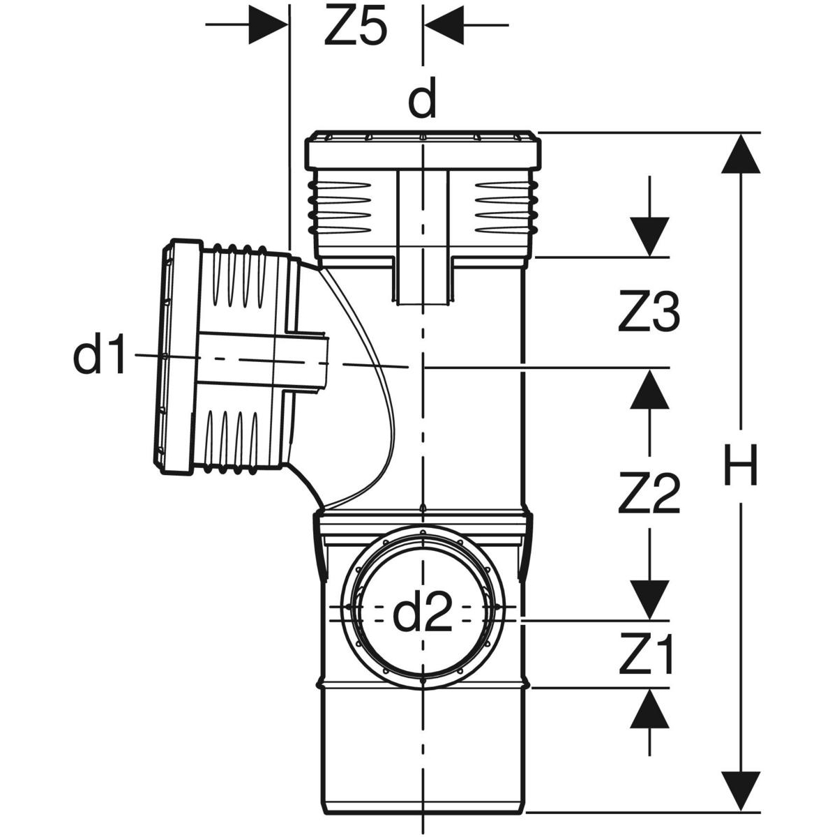 Czwórnik GEBERIT Silent-PP polipropylen, 110 mm x 75 mm x 110 mm x 110 mm DN 100 x DN 70 x DN 100 x DN 100, mw x mw x mw x mw