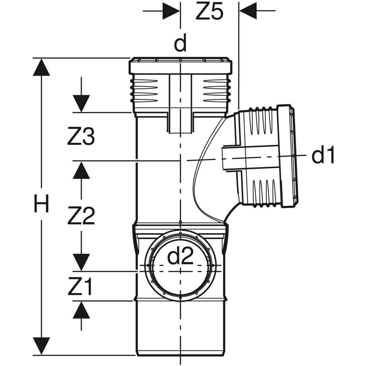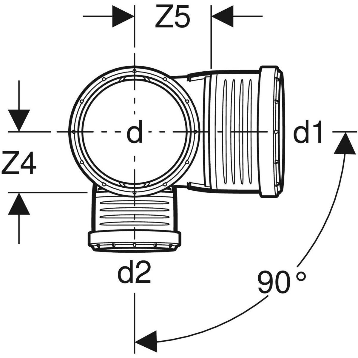 Czwórnik GEBERIT Silent-PP polipropylen, 110 mm x 75 mm x 110 mm x 110 mm DN 100 x DN 70 x DN 100 x DN 100, mw x mw x mw x mw