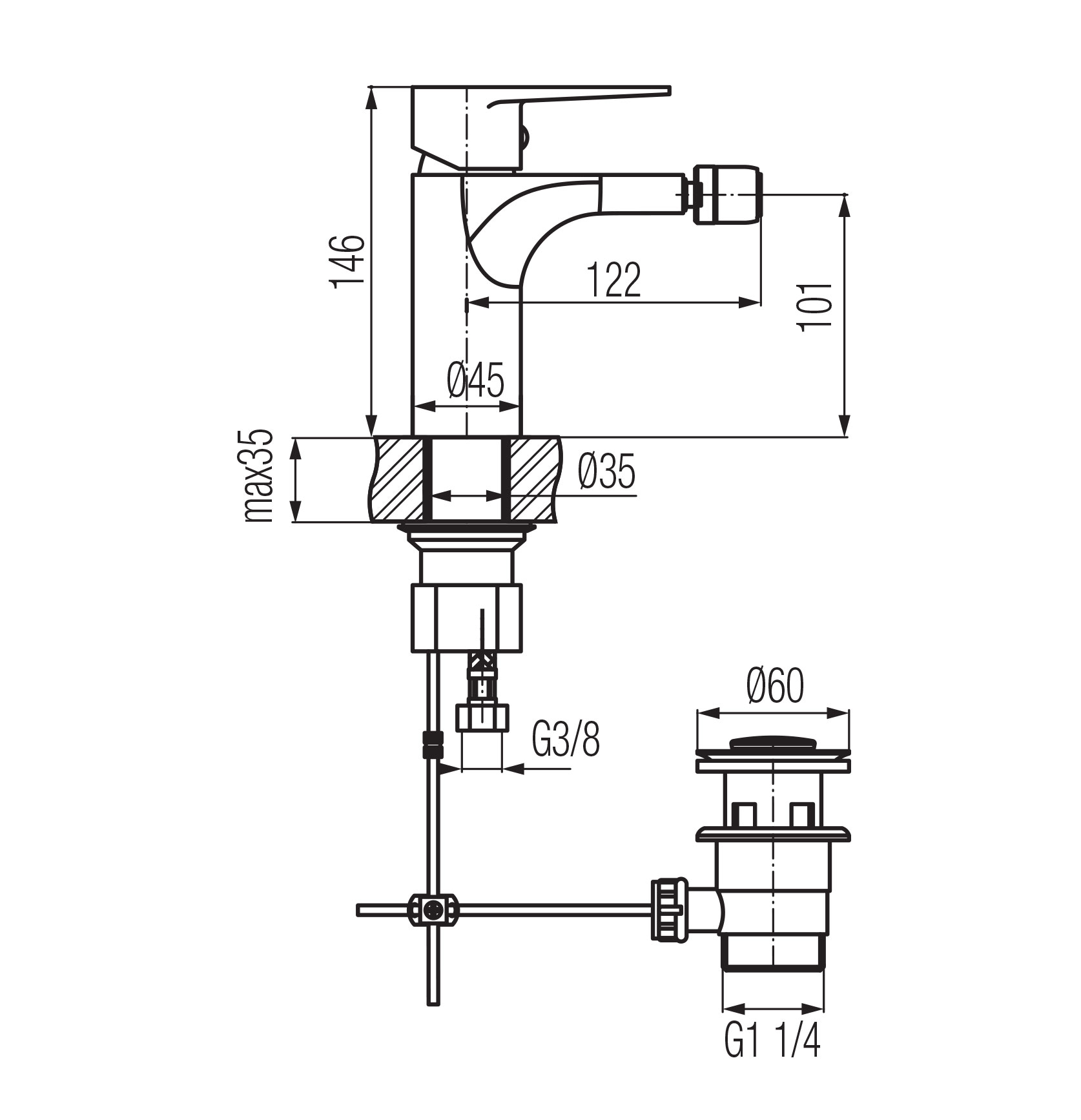 DALI BLACK Bateria bidetowa stojąca z korkiem spustowym