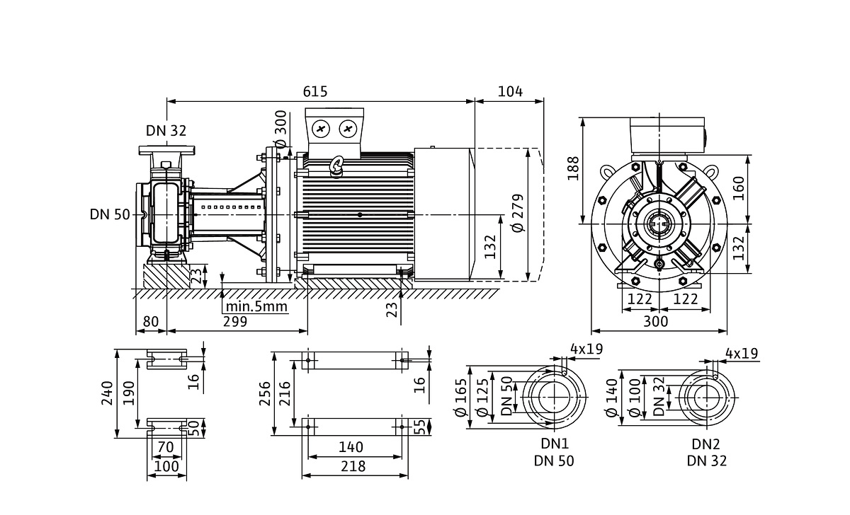 Jednostopniowa dławnicowa pompa wirowa o konstrukcji blokowej do ustawienia na fundamencie wraz ze stopą na korpusie pompy. Odporna na drgania, zapewniająca cichą pracę konstrukcja blokowa z latarnią i sztywno połączonym silnikiem standardowym (silnik znormalizowany). Z wymuszonym opływem, niezależnym od kierunku obrotów mieszkowym uszczelnieniem mechanicznym (od 37 kW/4-bieg. opcjonalnie z kasetowym uszczelnieniem mechanicznym w systemie cofki do wymiany uszczelnienia mechanicznego bez demontażu silnika) oraz wirnikiem redukującym kawitację. Kołnierze z przyłączami pomiarowymi ciśnienia R 1/8. Wszystkie komponenty żeliwa są pokryte powłoką kataforetyczną. W wersji standardowej silniki w klasie IE3. Pompy z silnikami ≥ 5,5 kW są seryjnie wyposażone w czujnik termistorowy jako zabezpieczenie silnika. Dane eksploatacyjne Przetłaczane medium: Dane w zależności od typu Przepływ: Dane w zależności od typu Wysokość podnoszenia: Dane w zależności od typu Temperatur