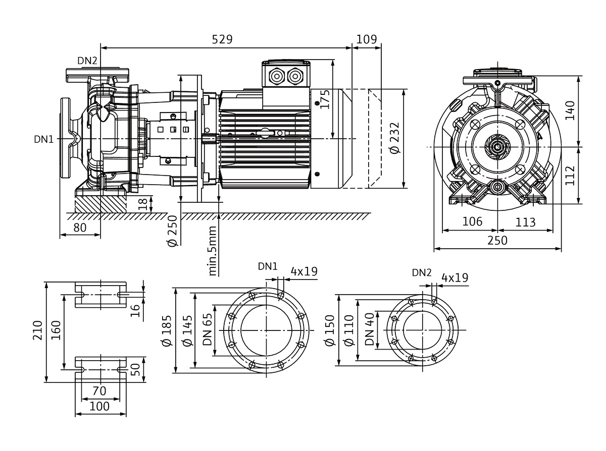 Jednostopniowa dławnicowa pompa wirowa o konstrukcji blokowej do ustawienia na fundamencie wraz ze stopą na korpusie pompy. Odporna na drgania, zapewniająca cichą pracę konstrukcja blokowa z latarnią i sztywno połączonym silnikiem standardowym (silnik znormalizowany). Z wymuszonym opływem, niezależnym od kierunku obrotów mieszkowym uszczelnieniem mechanicznym (od 37 kW/4-bieg. opcjonalnie z kasetowym uszczelnieniem mechanicznym w systemie cofki do wymiany uszczelnienia mechanicznego bez demontażu silnika) oraz wirnikiem redukującym kawitację. Kołnierze z przyłączami pomiarowymi ciśnienia R 1/8. Wszystkie komponenty żeliwa są pokryte powłoką kataforetyczną. W wersji standardowej silniki w klasie IE3. Pompy z silnikami ≥ 5,5 kW są seryjnie wyposażone w czujnik termistorowy jako zabezpieczenie silnika. Dane eksploatacyjne Przetłaczane medium: Dane w zależności od typu Przepływ: Dane w zależności od typu Wysokość podnoszenia: Dane w zależności od typu Temperatur
