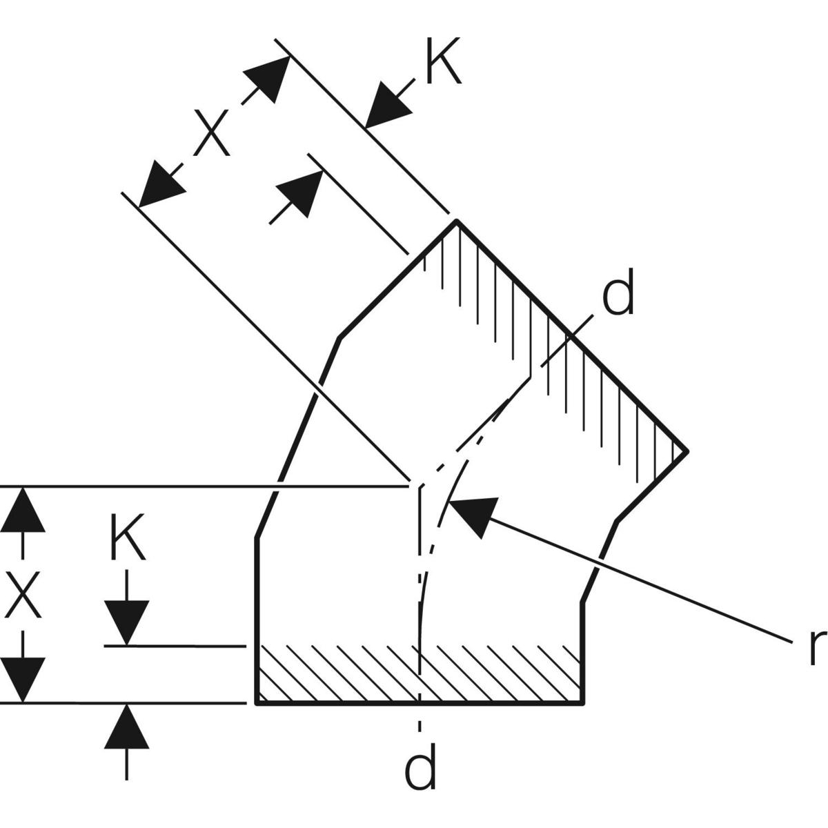 Długi łuk 45' GEBERIT HDPE, PE / polietylen, 315 mm, DN 300 x 315 mm x DN 300 (króciec)