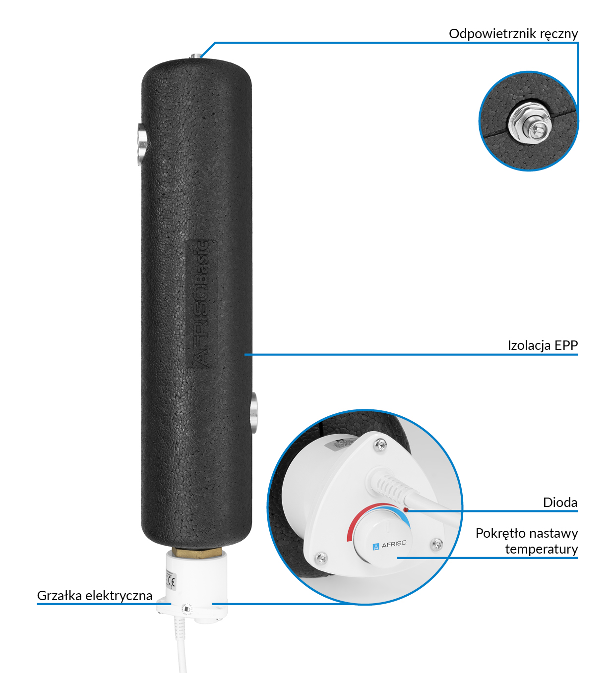 Termostat bezpieczeństwa wbudowany w grzałkę chroni przed przegrzaniem.