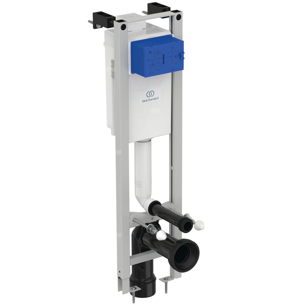 PROSYS ECO M, stelaż podtynkowy do miski wiszącej WC, mechaniczny system spłukujący. Podtynkowa instalacja z ramą nośna, montaż do ściany. Szerokość ramy stelaża 30 cm, dedykowany do pomieszczeń o ograniczonej, wąskiej powierzchni. Stelaż testowany na obciążeniu 400 kg. Rama stelaża zabezpieczona i odporna na korozję. Szybka instalacja z systemem EasyFix. Regulowane kolano rury odpływowej. Wsporniki z blokadą ułatwiającą montaż i regulacją wysokości w zakresie od 0 do 200 mm. Zbiornik z system spłukującym montowanym od frontu. Spłukiwanie 2-funkcyjne, fabryczne ustawienie 6/3 l, regulacja spłukiwania do 4/2 l. Zbiornik spłukujący wykonany z polipropylenu (PP), wyposażony w obudowę antykondensacyjną. Zawór napełniający z oznaczeniem CE norma EN 14055 CL1, klasa akustyczna pracy I zgodna ze standardami NF, głębokość zbiornika 187 mm, 1 punkt montażu dopływu wody. Elementy w komplecie: Standardowy zestaw montażowy do miski. Kompletny zestaw montażowy do stelaża. Komplet przyłączeniowy do miski WC (rura odpływowa i dopływowa). Rura odpływu do kanalizacji z adapterem Ø90/110. Gumowa uszczelka do miski ø45. Osłona montażowa. Zawór zamykający G½". E233267 - Do skompletowania z zamawianymi oddzielnie przyciskami spłukującymi: Mechaniczne przyciski spłukujące: OLEAS M1, M2, M3, M4; SOLEA M1, M2; SEPTA PRO M1, M2.