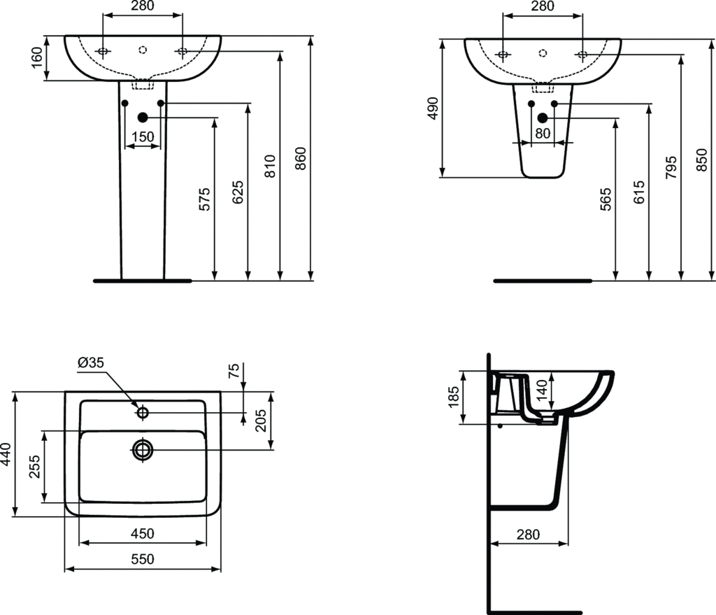 Otwór na baterię. Możliwość skompletowania z postumentem R206601, z półpostumentem R330901. Brak zestawu montażowego, rekomendowany zestaw typu M 10x140 mm. Zalecane dodatkowe elementy: Postumentem R206601. Półpostument R330901. Postumentem mały T427201. Półpostument mały T426701. Zestaw montażowy M10 x 140 mm WW965340. Syfon G1 1/4 A2305AA. Przyłącze kątowe B7883AA. Rozeta do syfonu G1 1/4 B4801AA.