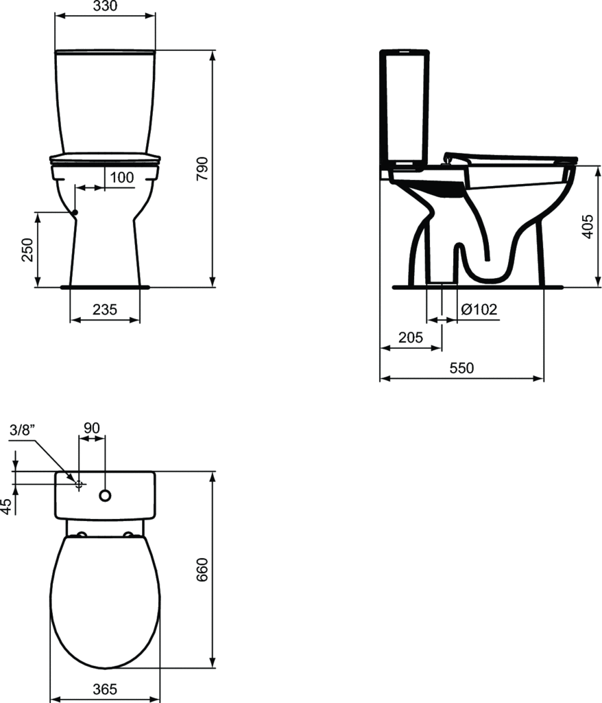 Kompakt WC Eurovit+ ścisle mocowany stojący. Lejowy, z poziomym odpływem pojemność: 4,5/3 l, dwufunkcyjny zbiornik. W komplecie z deską sedesową z duroplastu z metalowymi zawiasami oraz zestawem montażowym do miski WC.