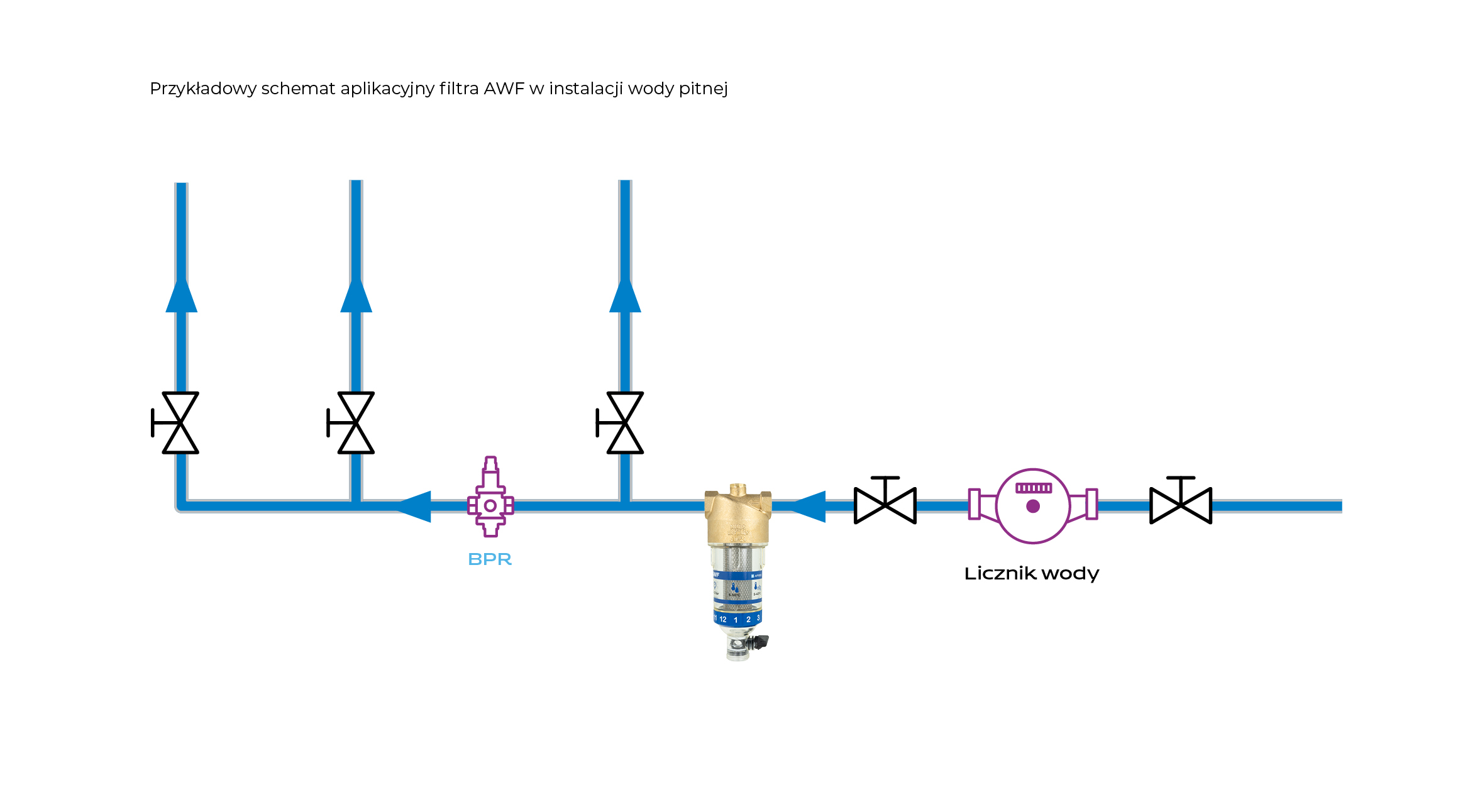 Stosowany w instalacjach wody pitnej.Montowany pomiędzy licznikiem wody a reduktorem ciśnienia.