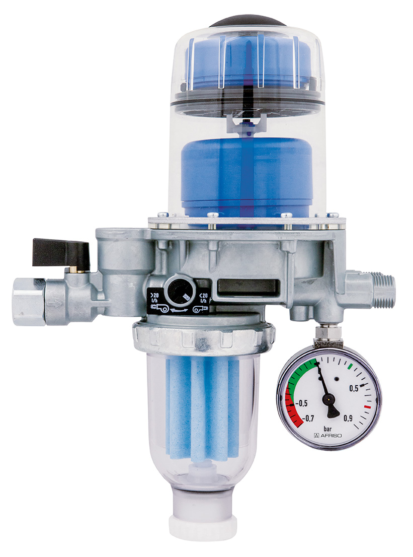 Filtr olejowy AFRISO FloCo-TOP-2KM Si zintegrowany z odpowietrznikiem fi 3/8'' x 3/8'' GW x GZ, z wkładem plastikowym, maks. przepływ 100 l/h