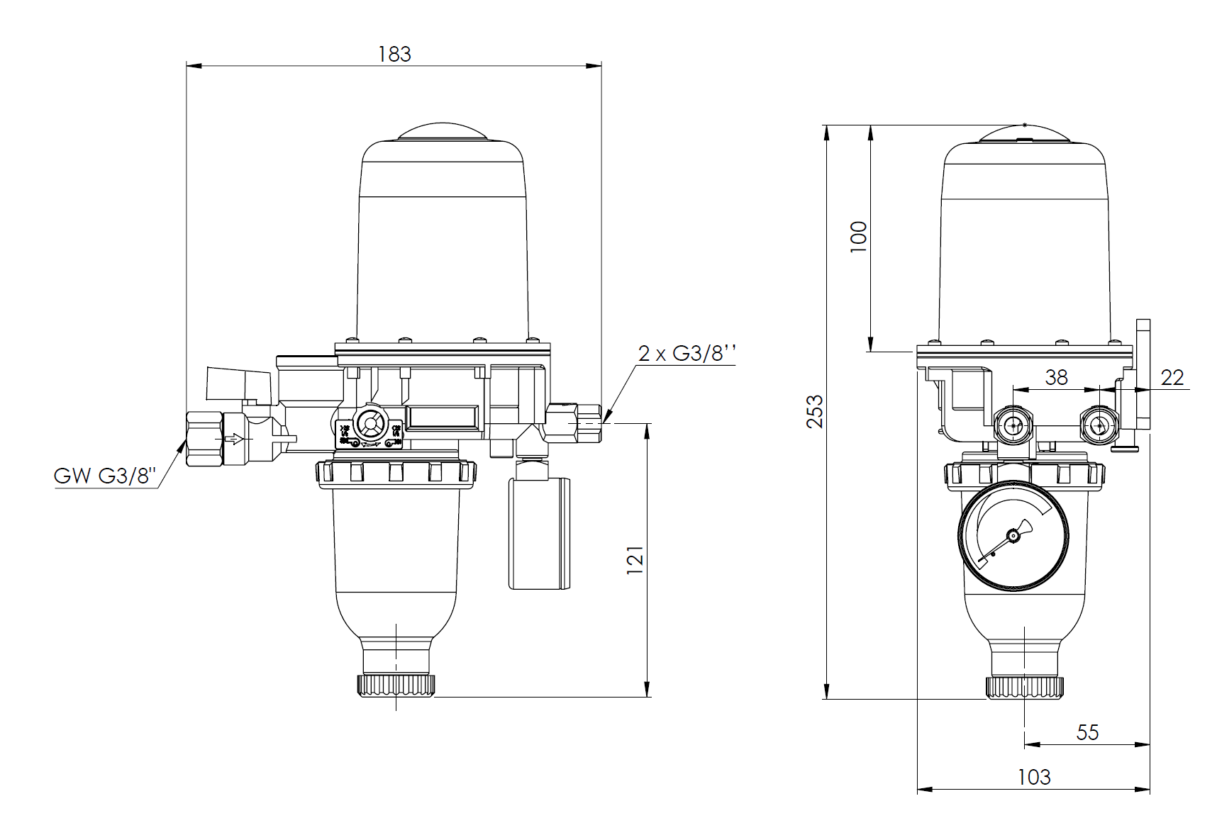 Wyposażony w zawór odcinający filtr od zbiornika oraz przełącznik trybu filtracji (filtracja jednokrotna/wielokrotna).