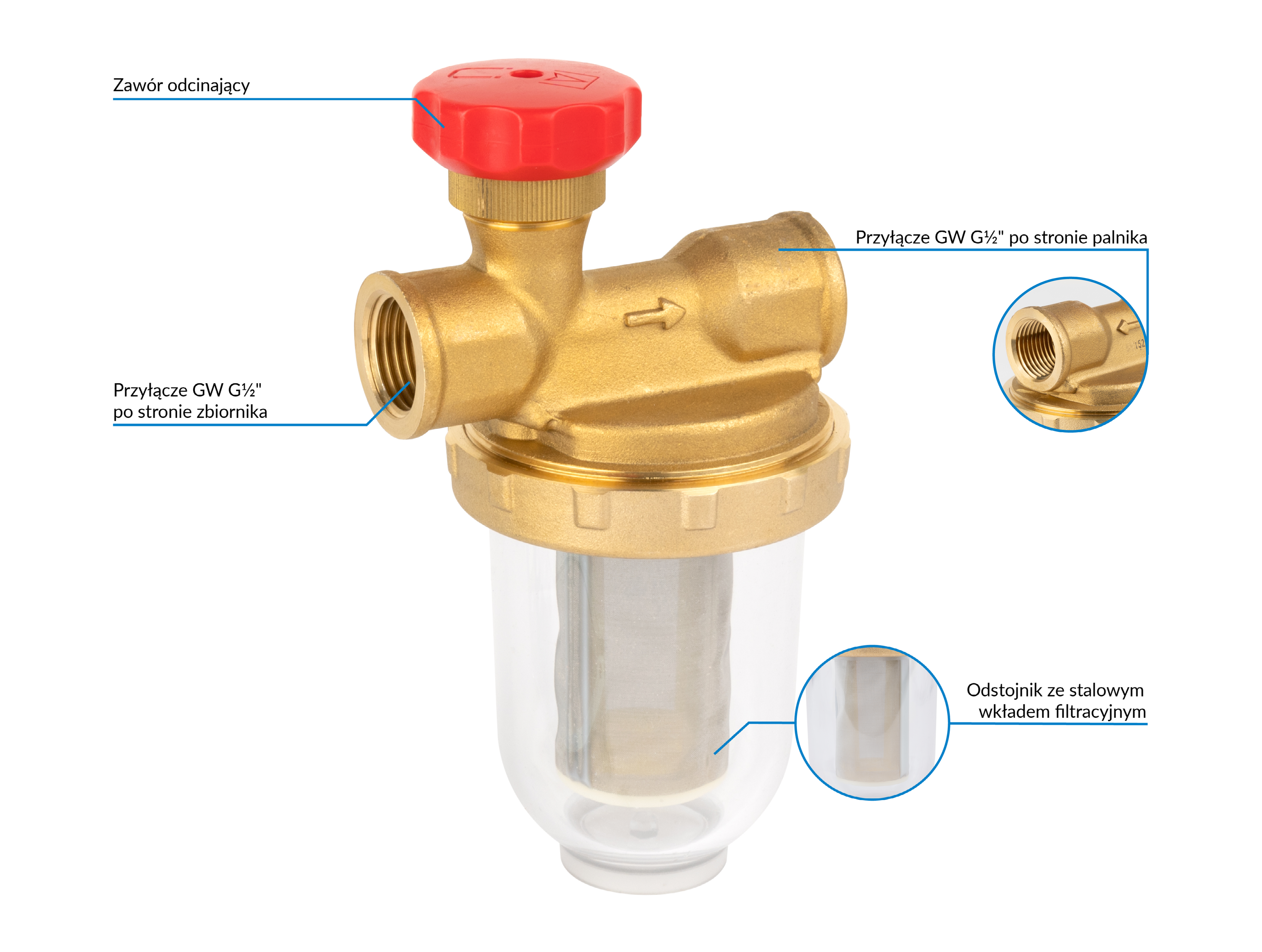 Usuwa zanieczyszczenia stałe z oleju, które mogą zakłócać pracę instalacji olejowej.