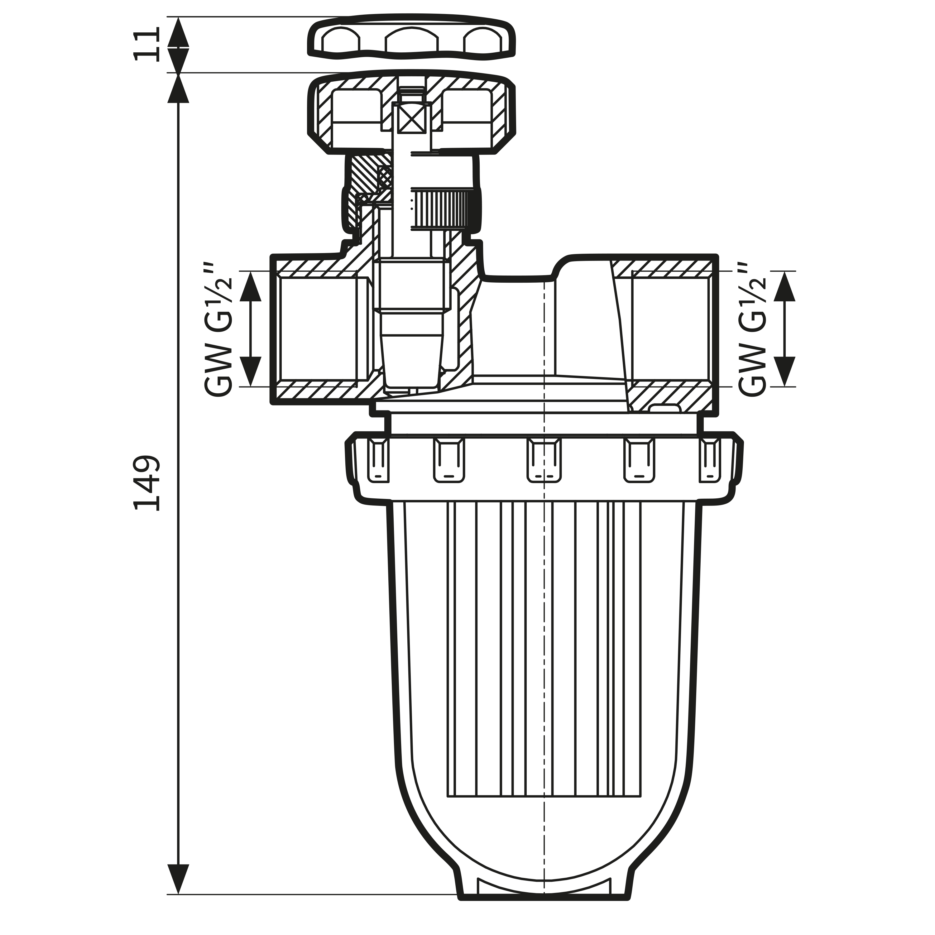 Filtr olejowy AFRISO V 1/2 - 500 St jednorurowy fi 1/2'' x 1/2'' GW x GW, z wkładem stalowym, maks. przepływ 500 l/h