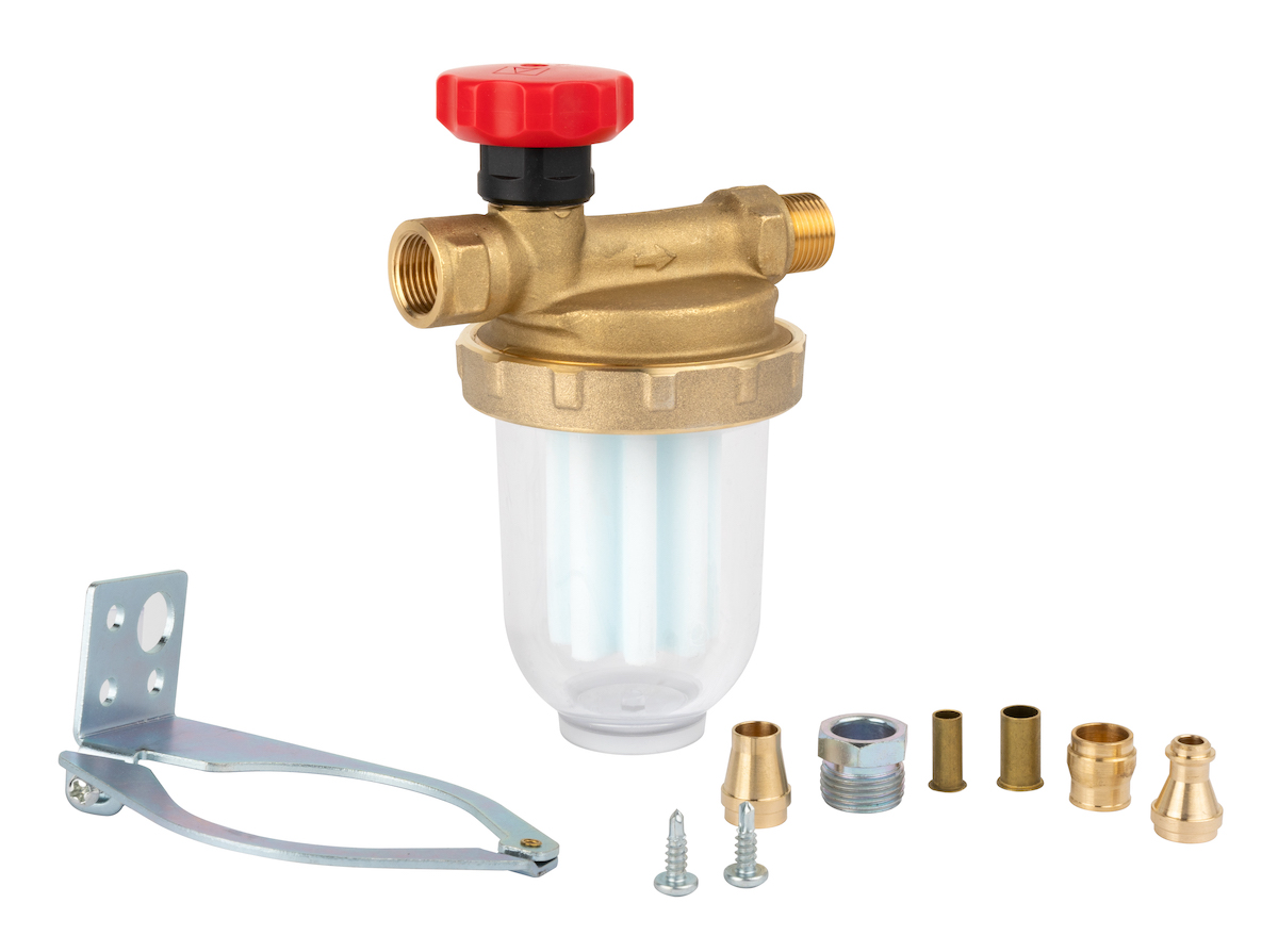 Filtr olejowy AFRISO V500Si jednorurowy fi 3/8'' x 3/8'' GW x GZ, z wkładem plastikowym, maks. przepływ 250 l/h