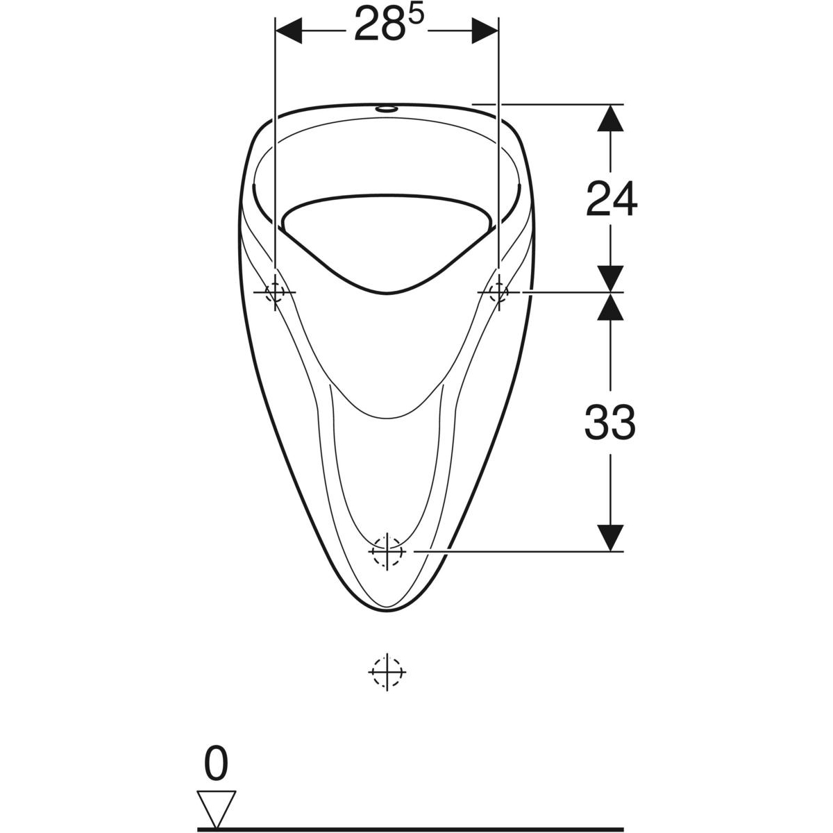 Wiszący Z krawędzią Syfon zakryty Ukryte mocowania Do montażu pisuarów z dopływem u góry i odpływem do tyłu Do natynkowych zaworów spłukujących Materiał: Ceramika sanitarna Kolor główny: Biały Zawartość: Pisuar Elementy mocujące