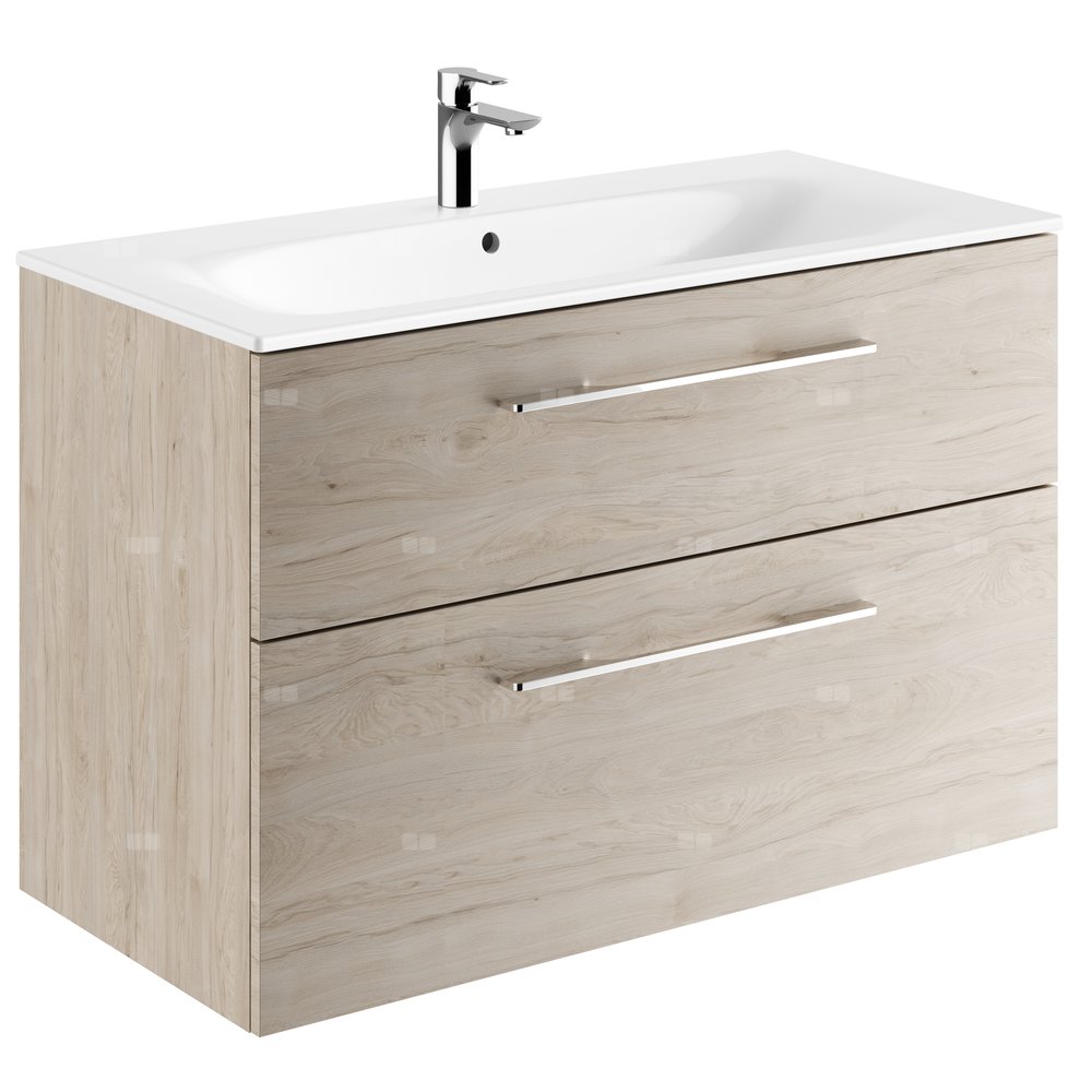 Geberit Selnova Square Zestaw szafki pod umywalkę, z dwiema szufladami, B100cm, H65.2cm, T50.2cm, orzech włoski hickory jasny, z umywalką meblową, cienki rant, z przelewem, z otworem na baterię