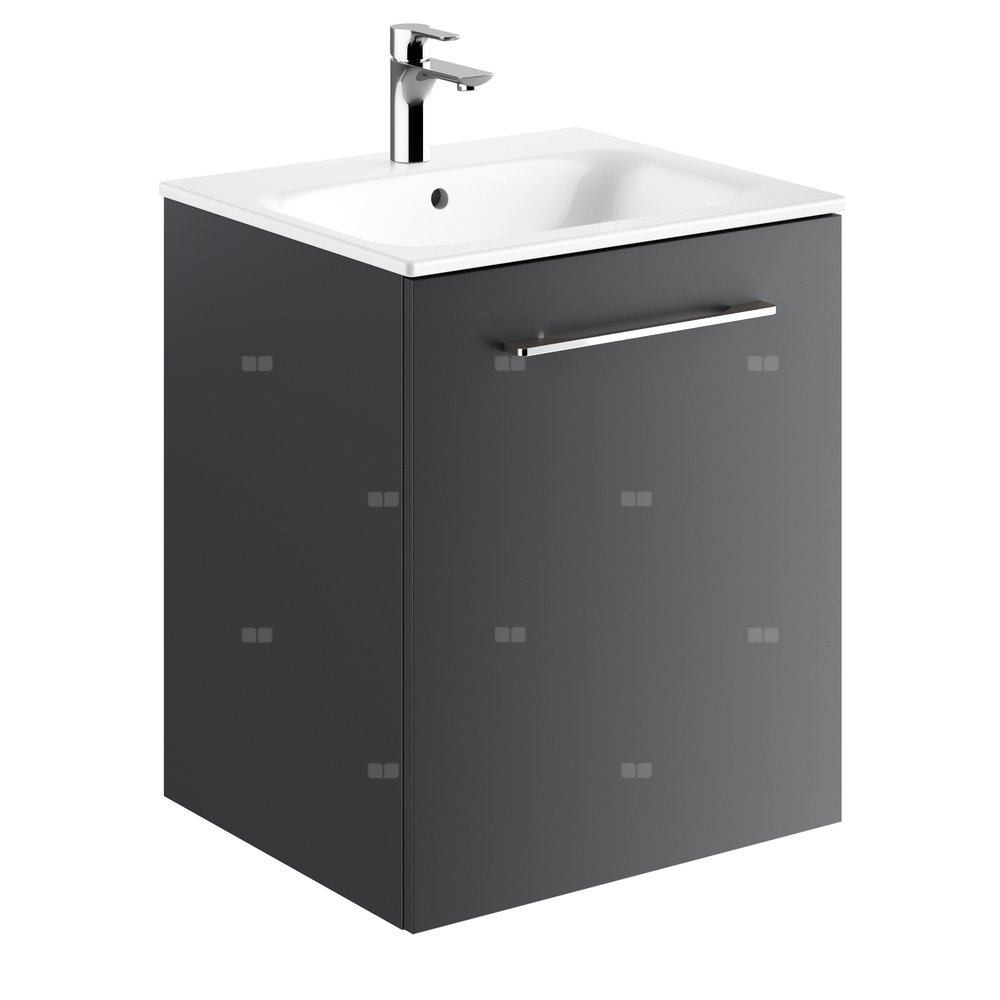 Certyfikat FSC™ C134279 Wiszący Cienki rant Z jednymi drzwiami Z półką zamocowaną na stałe Uchwyt do otwierania Drzwi z mechanizmem cichego domykania Zawias z lewej lub prawej strony Wilgocioodporny Dostarczany wstępnie zmontowany Materiał: Ceramika sanitarna / sprasowana trójwarstwowa płyta wiórowa Kolor główny: Lava Powierzchnia: Lakierowany matowy Zawartość: Umywalka meblowa Szafka pod umywalkę meblową Uchwyt Elementy mocujące