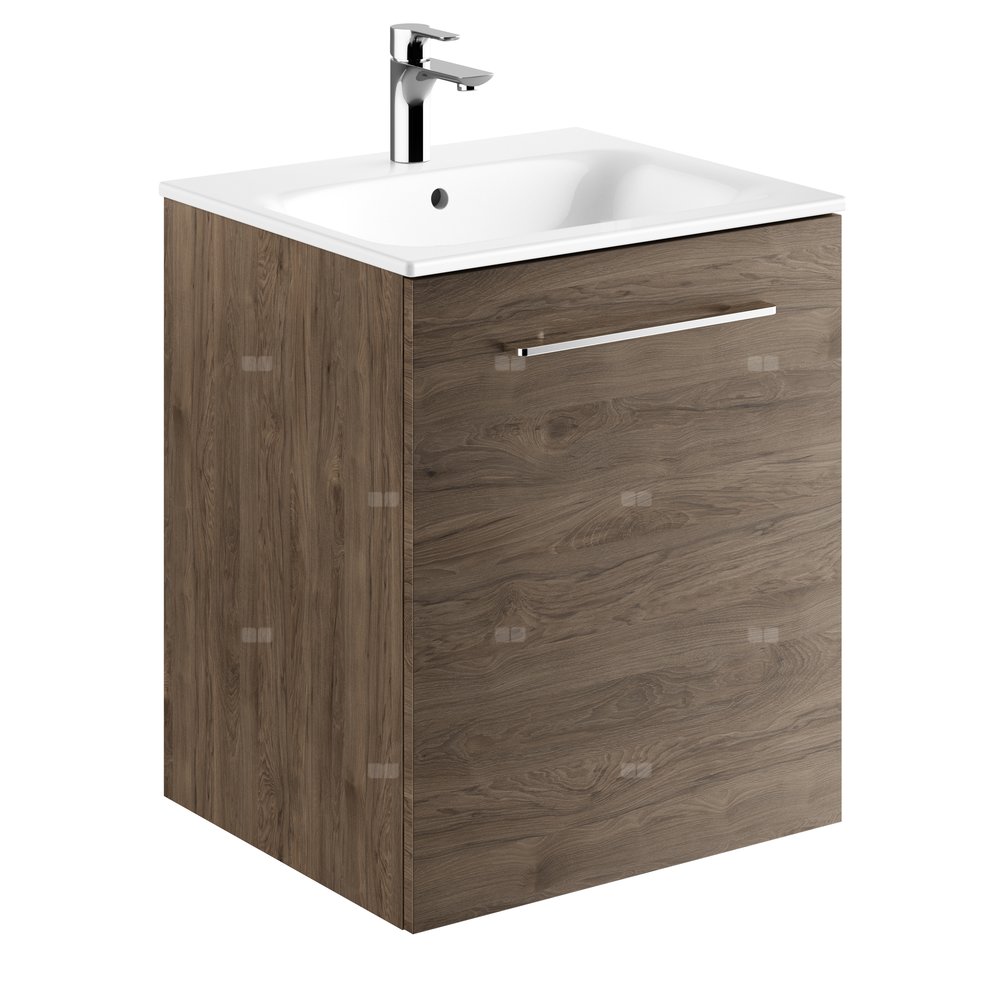 Geberit Selnova Square Zestaw szafki pod umywalkę, z jednymi drzwiami, B55cm, H65.2cm, T50.2cm, orzech włoski hickory, z umywalką meblową, cienki rant, z przelewem, z otworem na baterię