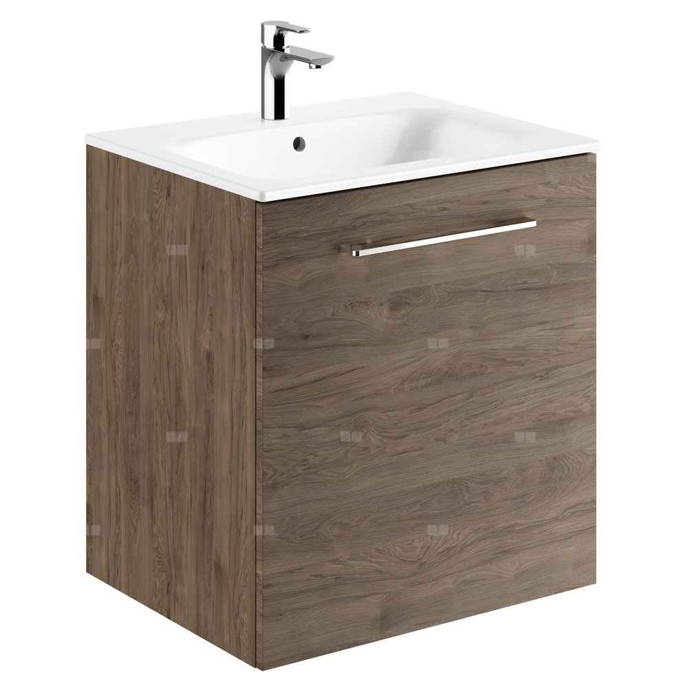 Geberit Selnova Square Zestaw szafki pod umywalkę, z jednymi drzwiami, B60cm, H65.2cm, T50.2cm, orzech włoski hickory, z umywalką meblową, cienki rant, z przelewem, z otworem na baterię