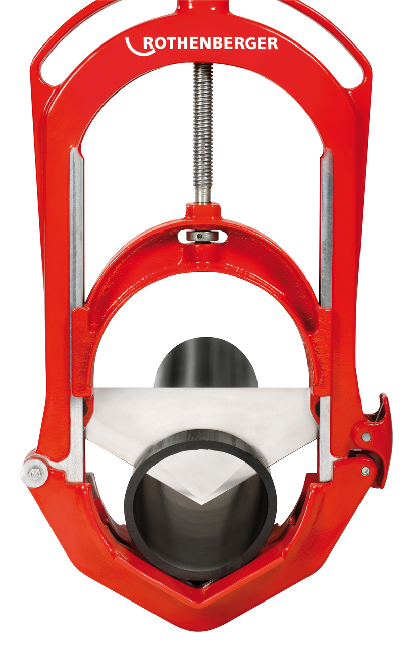 Dzięki ROCUT XL PE rury można łatwo ciąć. Zoptymalizowane kąty cięcia zapewniają niezbędną łatwość pracy. Dolną prowadnicę można całkowicie rozłożyć. Dlatego ROCUT XL można umieścić w dowolnym miejscu na rurze.
