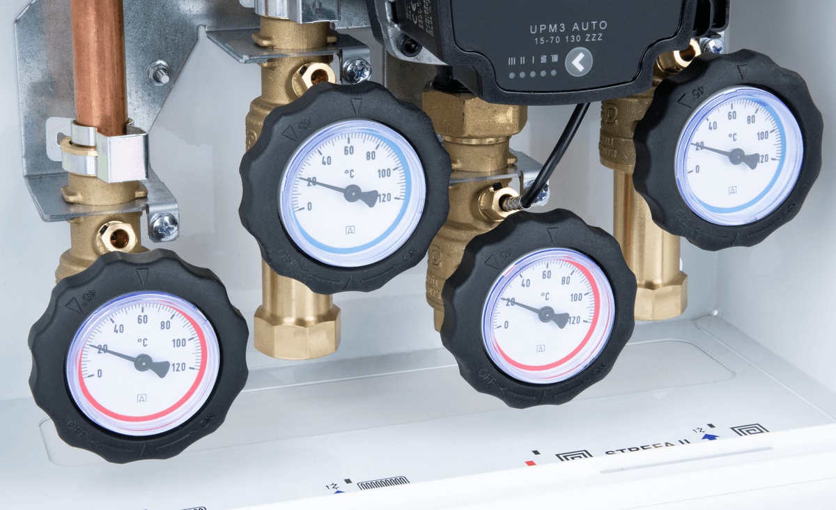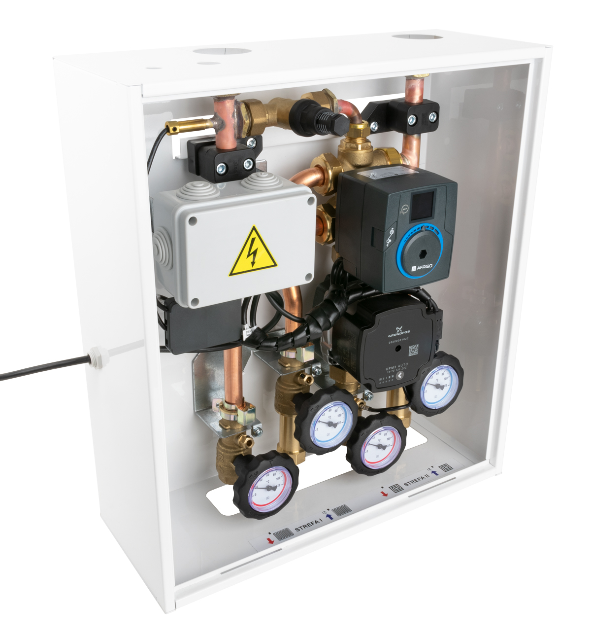 Tworzy dwie strefy ogrzewania o różnych temperaturach zasilania.