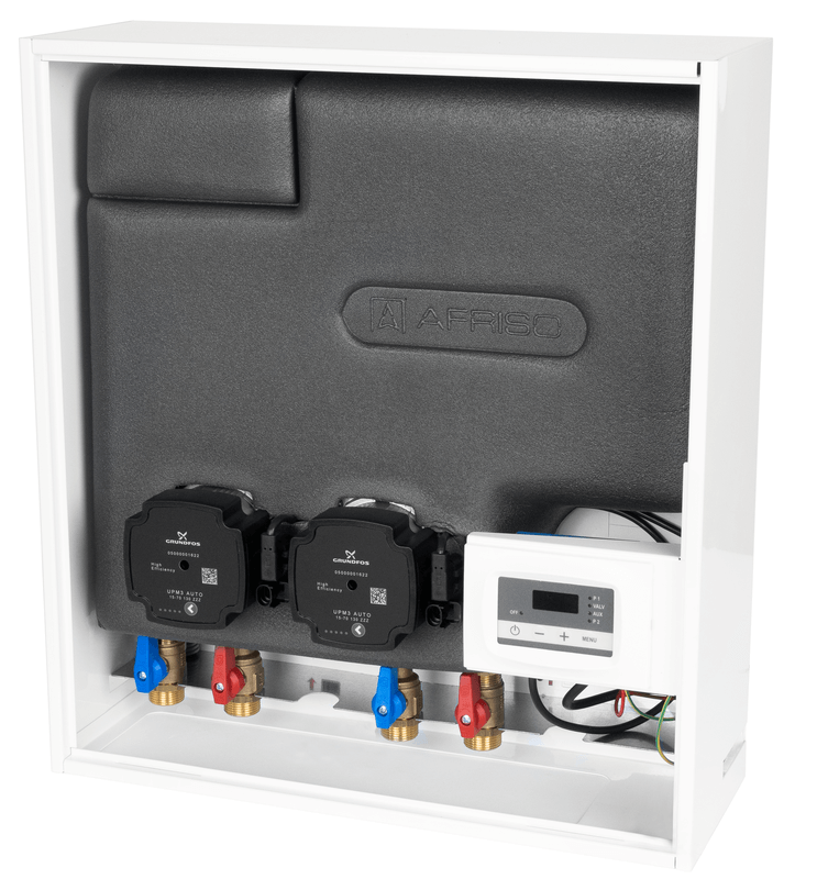 Grupa pompowa AFRISO PrimoBox AHB 622 GZ x GW 3/4'' x 3/4'', z zaworem termostatycznym, z izolacją, z pompą obiegową 2x Grunfos UPM3 Auto