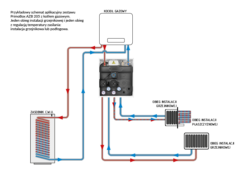 - Opcjonalnie można połączyć go z zestawem separacyjnym **PrimoBox AHB** i stworzyć kolumnę grzewczą łączącą 2 źródła ciepła.
