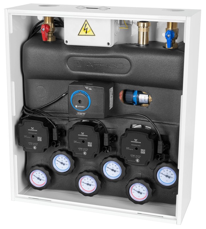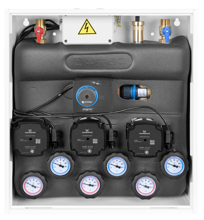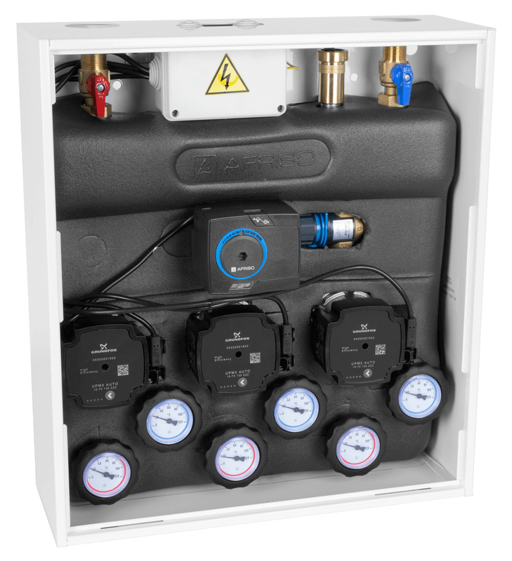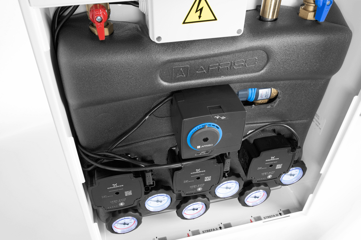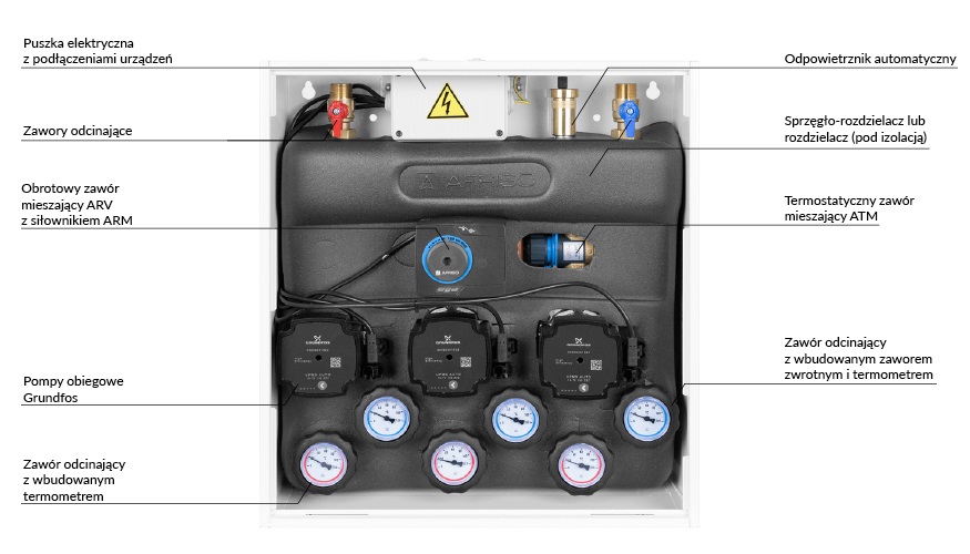 Wyposażony w pompy Grundfos UPm³, zawór obrotowy z siłownikiem ARM 141 oraz zawór termostatyczny ATM 561.