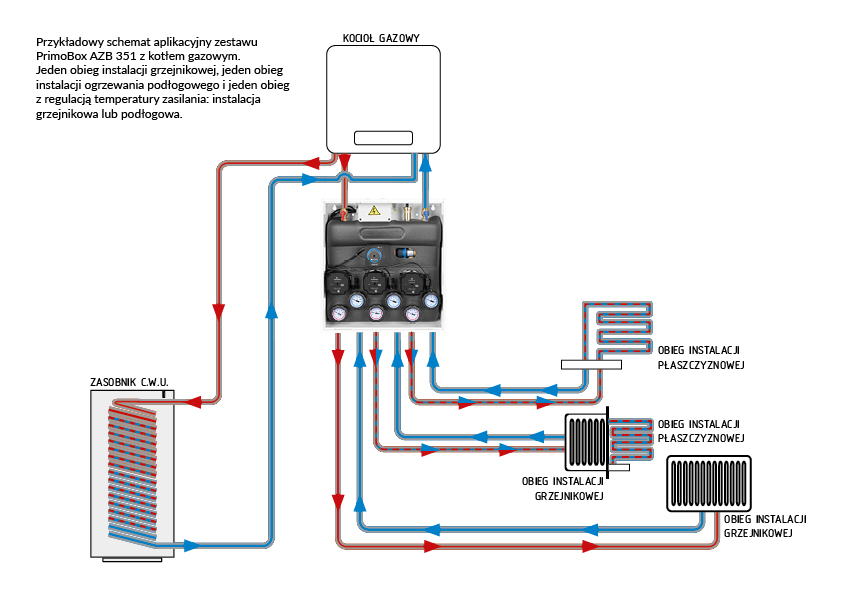 Opcjonalnie można połączyć go z zestawem separacyjnym **PrimoBox AHB** i stworzyć kolumnę grzewczą łączącą 2 źródła ciepła.