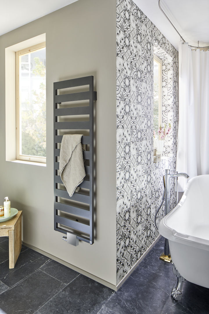 Proste linie, czysta estetyka. Casteo jest jedyny w swoim rodzaju. Przypadnie do gustu wielbicielom prostych, harmonijnych form. Ale nie tylko atrakcyjny wizualnie wygląd jest jego atutem. Może świadczyć przyjemne ciepło poza sezonem grzewczym i utrzymywać przytulną atmosferę w łazience (Casteo-E z dodatkowym zasilaniem elektrycznym lub w całkowicie elektrycznej wersji). Duże przestrzenie między rurami umożliwiają wygodne zawieszanie np. ręczników w celu ich wysuszenia. Casteo oferuje także swobodę podczas planowania i dopasowywania grzejnika do łazienki. Podłączenie do wyboru znajduje się: z boku lub pośrodku. Wyjątkowo też nadaje się do szybkiej i prostej modernizacji (Casteo-D).