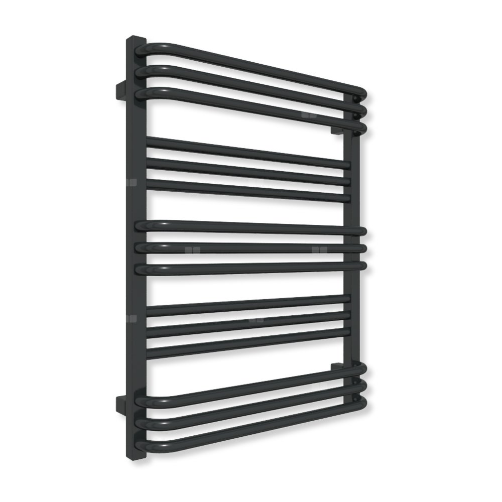 Grzejnik elektryczny TERMA POLA 780 x 600 mm, kolor czarny jak kruk mat RAL9005, moc 400 W, podłączenie E1, kabel spiralny z wtyczką czarny