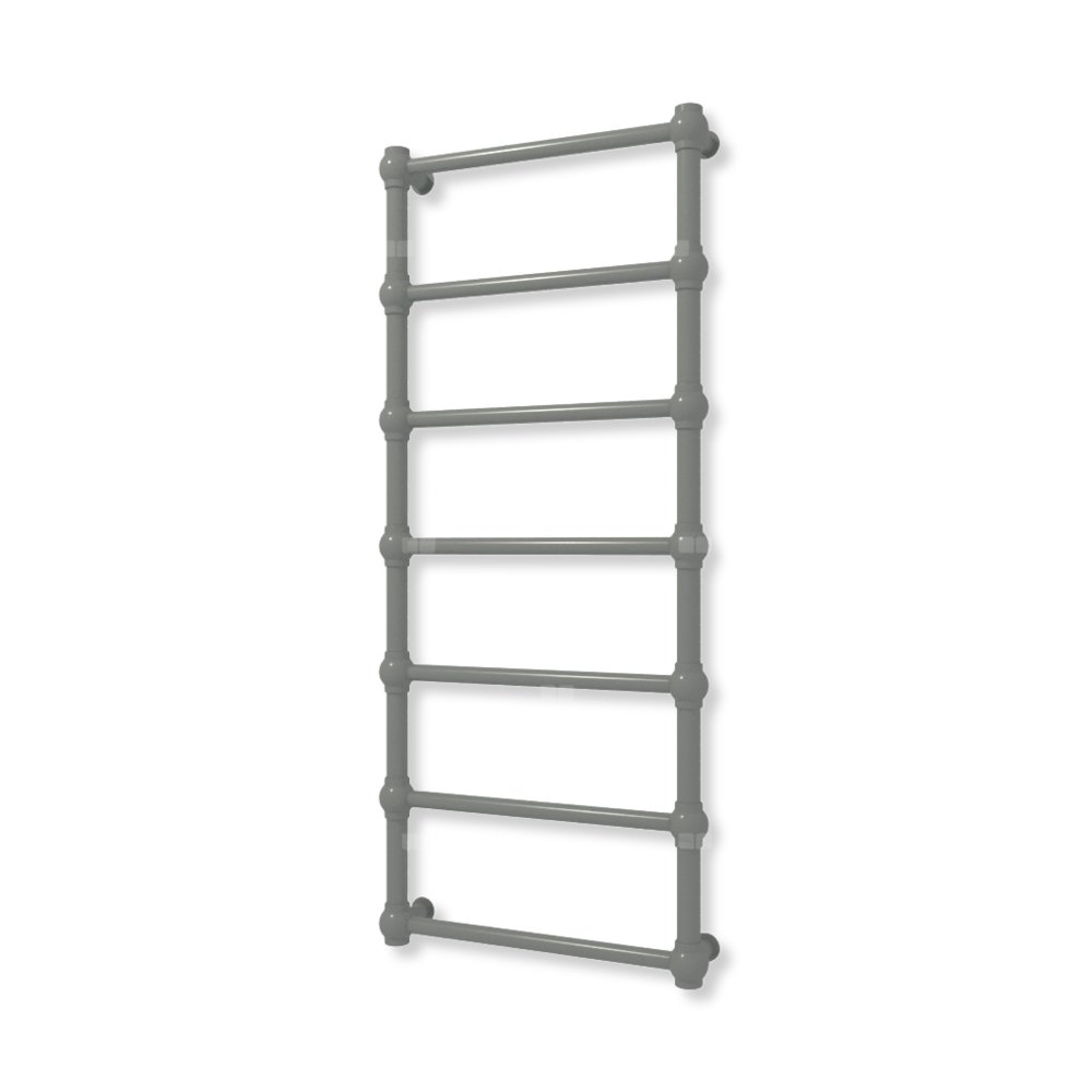 Bryła grzejnika została skonstuowana z rur o przekroju koła oraz stalowych kul. Całość tworzy formę charakterystyczną dla stylu retro.
