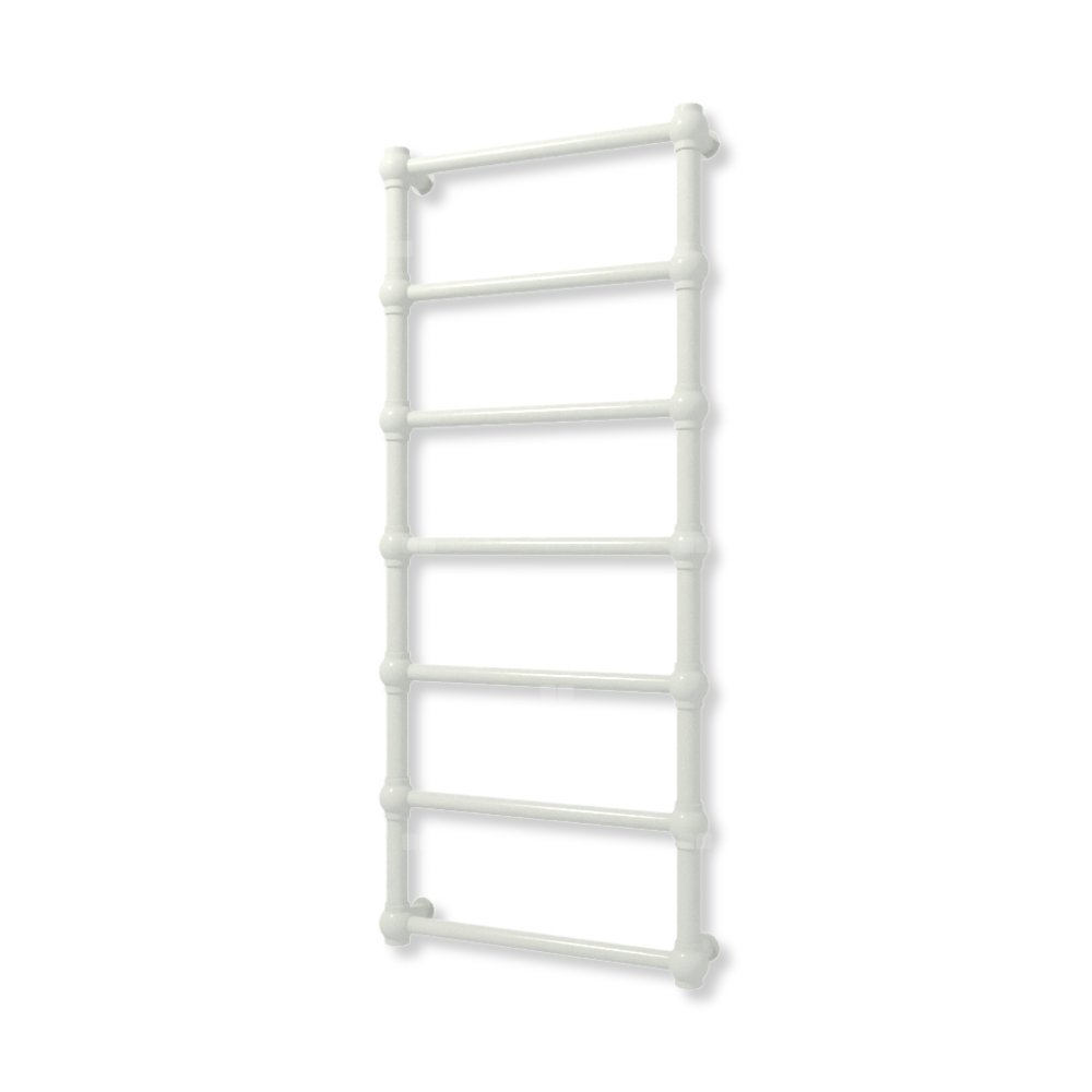 Bryła grzejnika została skonstuowana z rur o przekroju koła oraz stalowych kul. Całość tworzy formę charakterystyczną dla stylu retro.